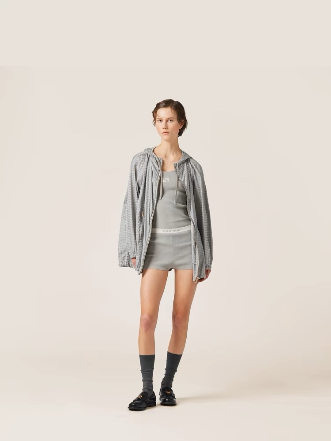 这款衣服是AAAAA 1:1 质量 (非常棒). 使用了和原版一模一样的材料. 商标部分也保持了和缪缪/Miu Miu一样. 图片拍摄是实物衣服拍摄, 您所收到的实物保证和我们图片一模一样.