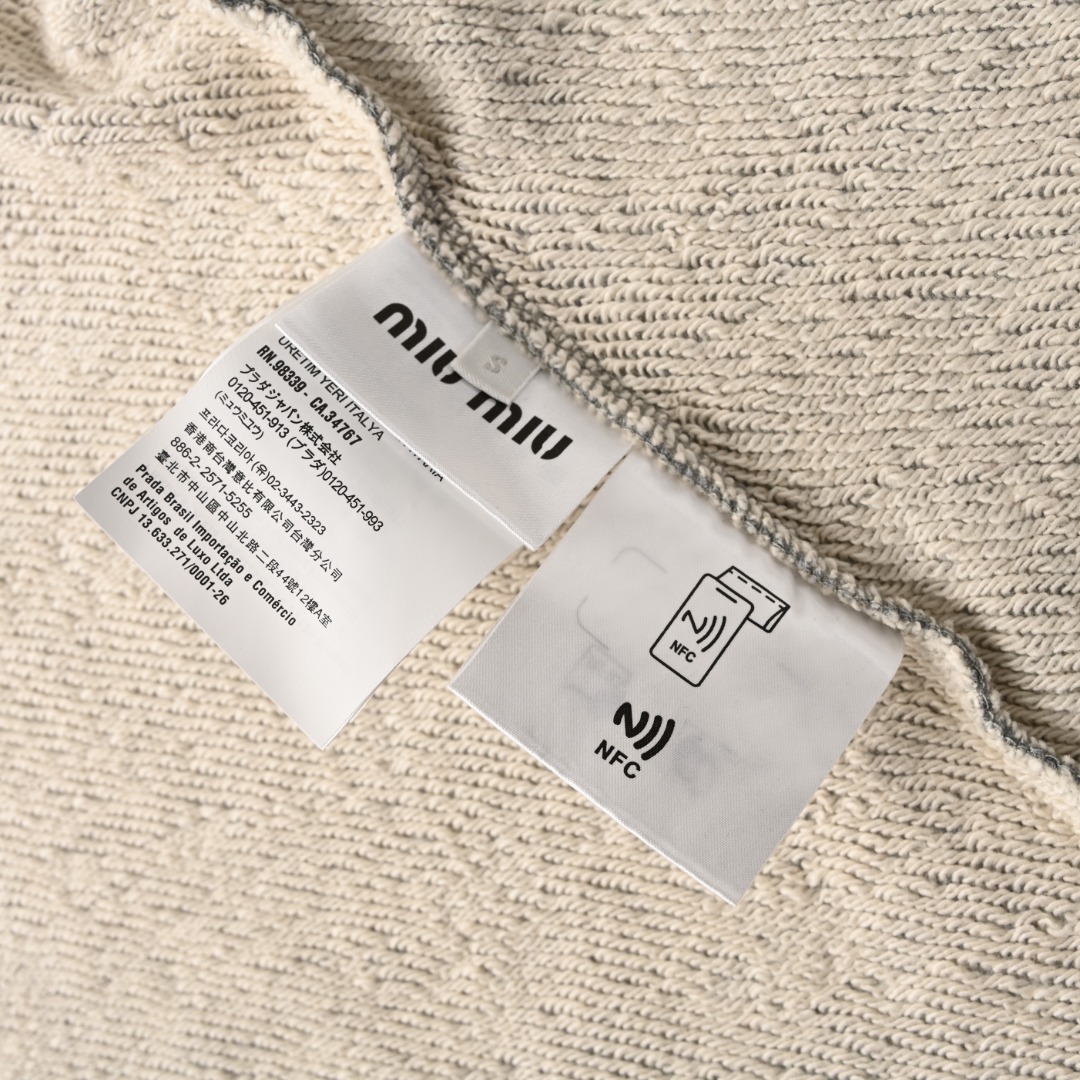 这款衣服是AAAAA 1:1 质量 (非常棒). 使用了和原版一模一样的材料. 商标部分也保持了和缪缪/Miu Miu一样. 图片拍摄是实物衣服拍摄, 您所收到的实物保证和我们图片一模一样.