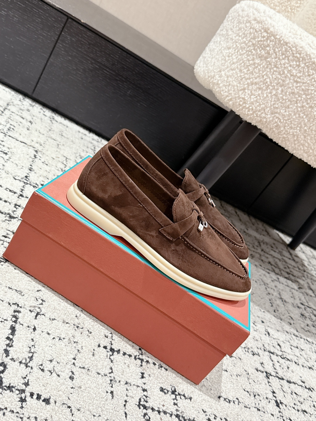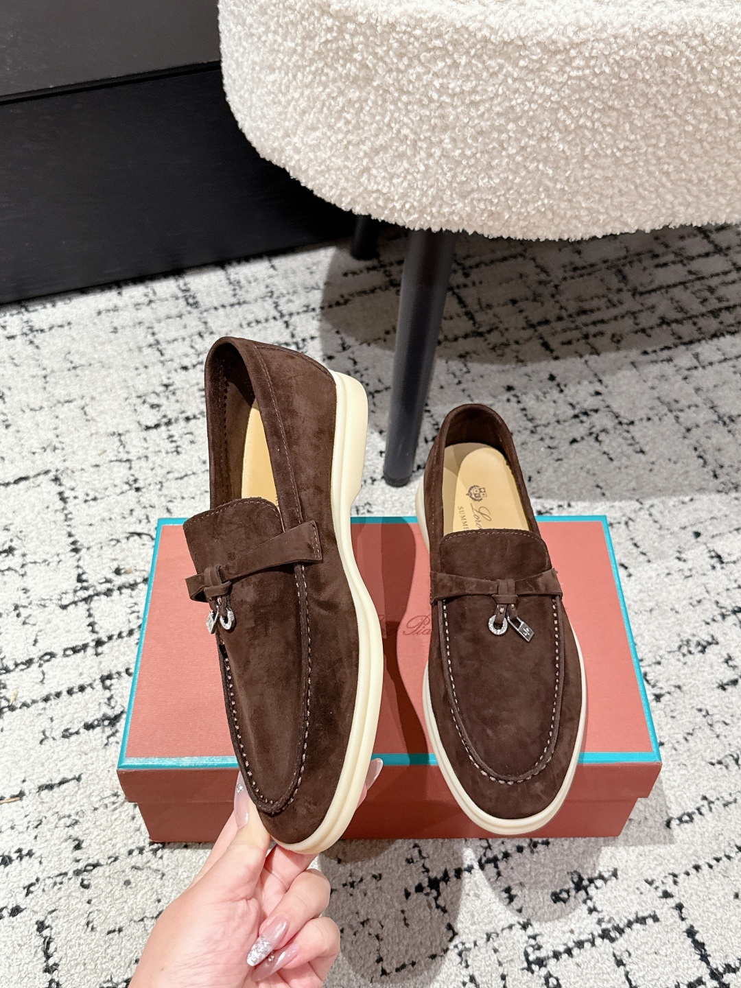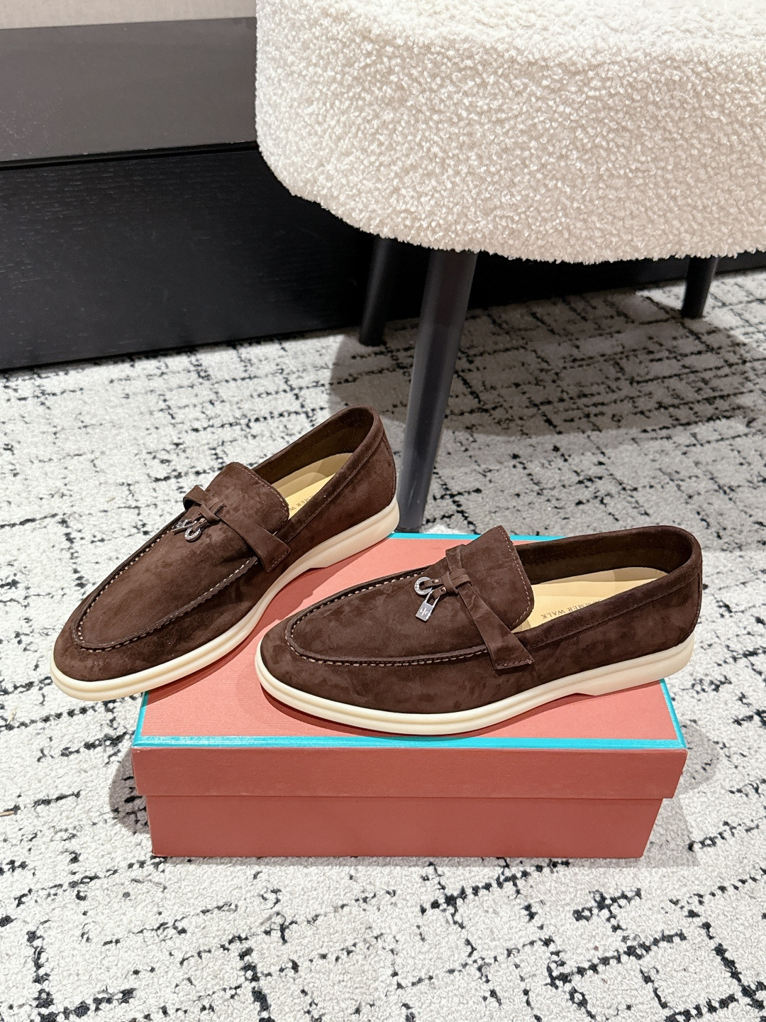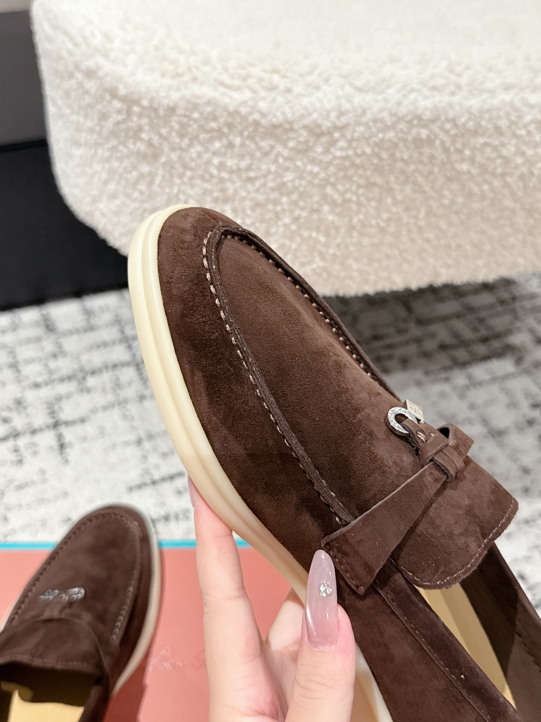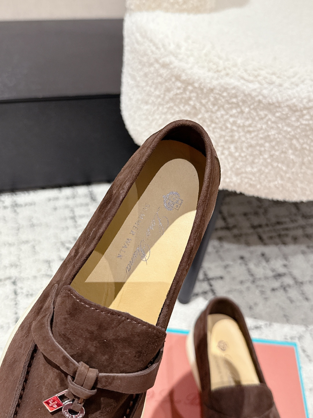 这款鞋子是AAAAA 1:1 质量 (非常棒). 使用了和原版一模一样的材料. 商标部分也保持了和洛罗皮亚纳/Loro Piana一样. 图片拍摄是实物鞋子拍摄, 您所收到的实物保证和我们图片一模一样.