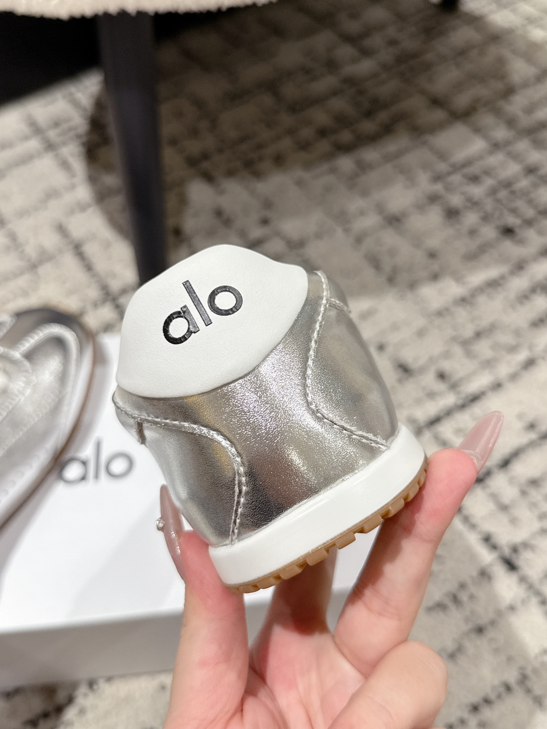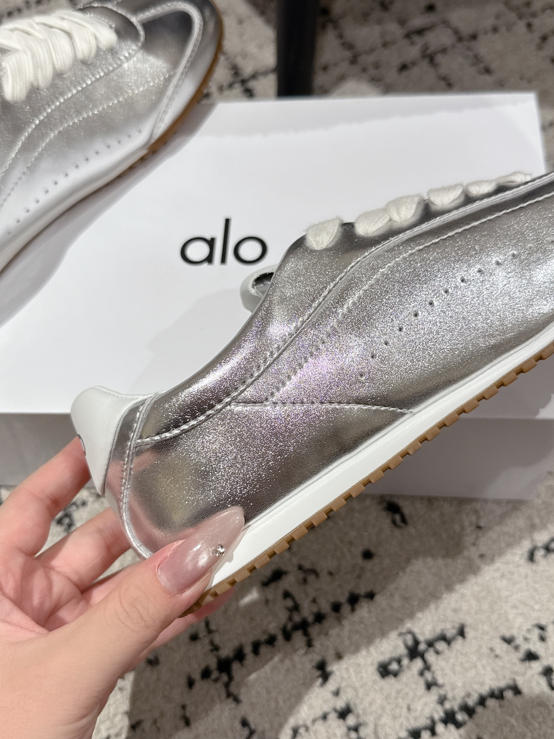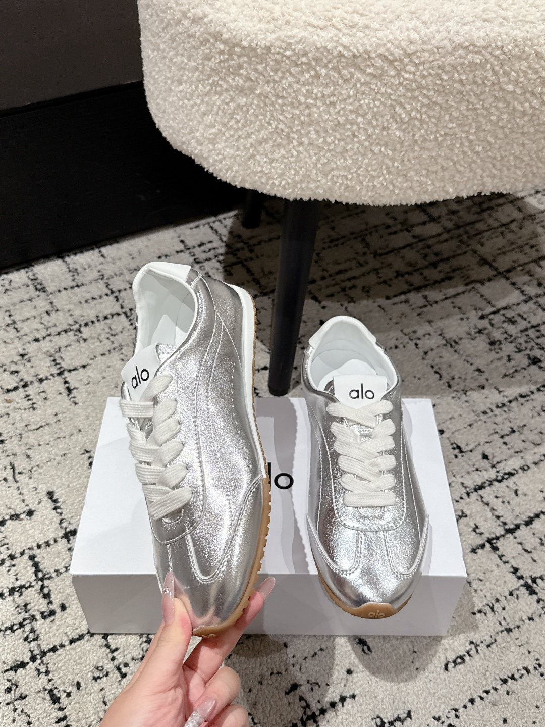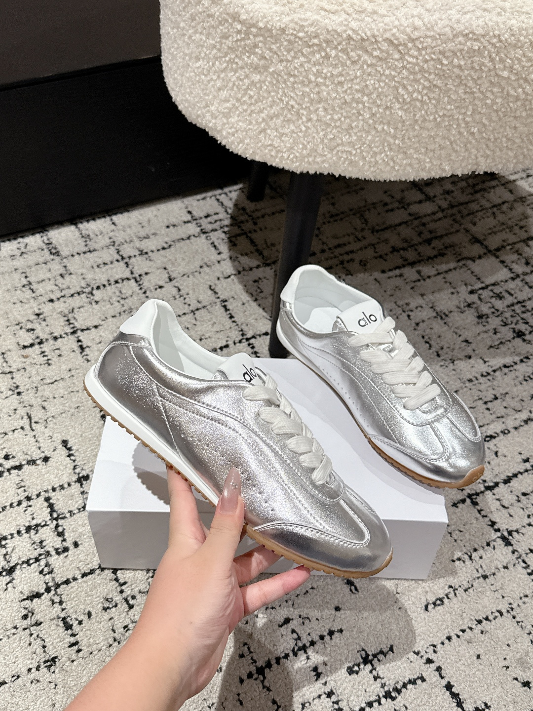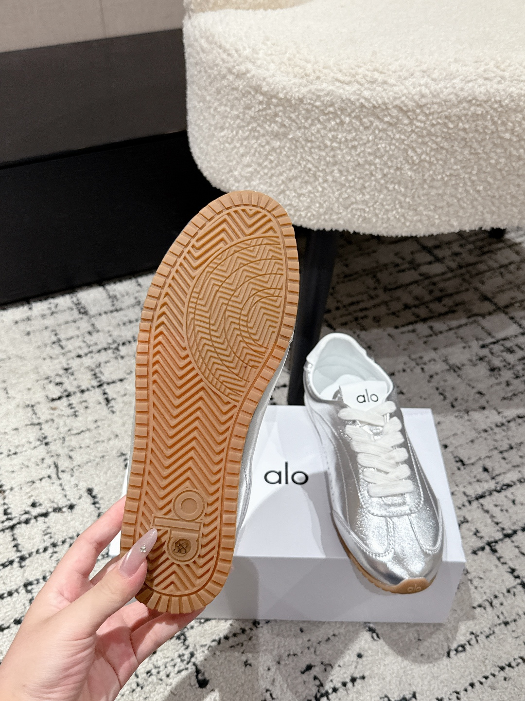 这款鞋子是AAAAA 1:1 质量 (非常棒). 使用了和原版一模一样的材料. 商标部分也保持了和Alo Yoga一样. 图片拍摄是实物鞋子拍摄, 您所收到的实物保证和我们图片一模一样.