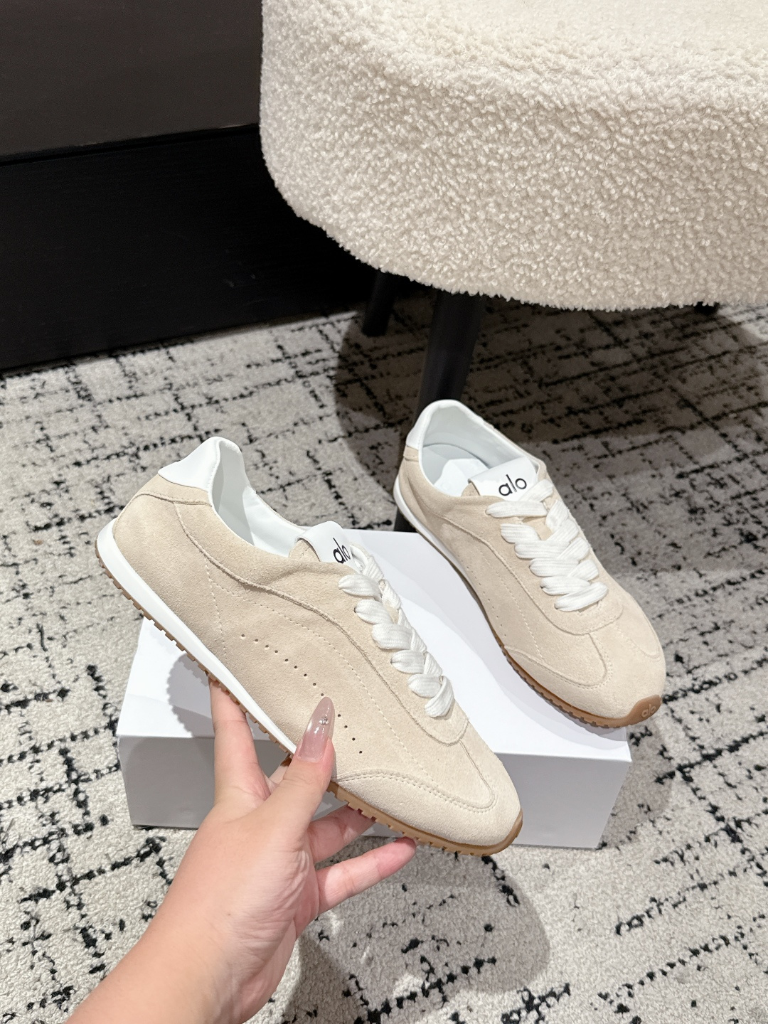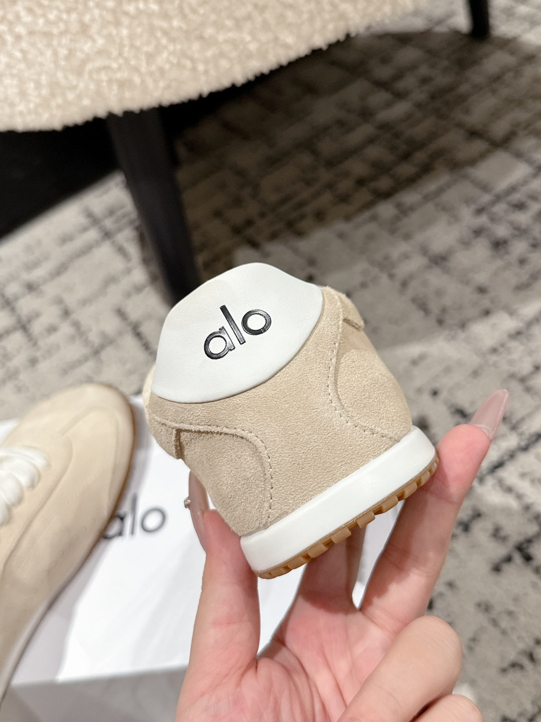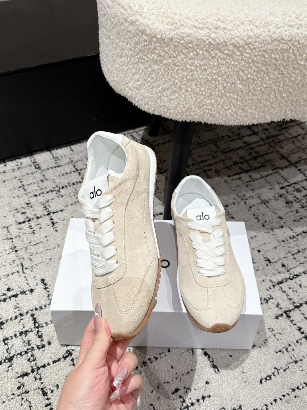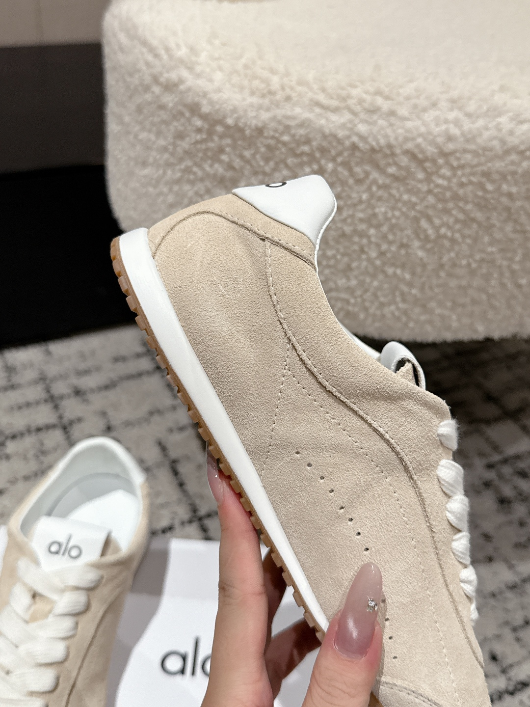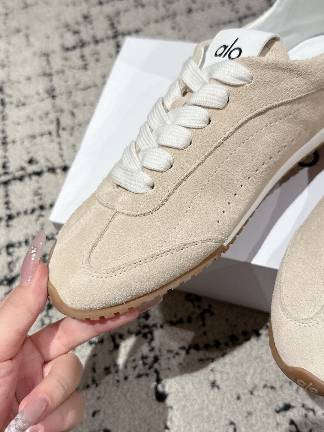这款鞋子是AAAAA 1:1 质量 (非常棒). 使用了和原版一模一样的材料. 商标部分也保持了和Alo Yoga一样. 图片拍摄是实物鞋子拍摄, 您所收到的实物保证和我们图片一模一样.