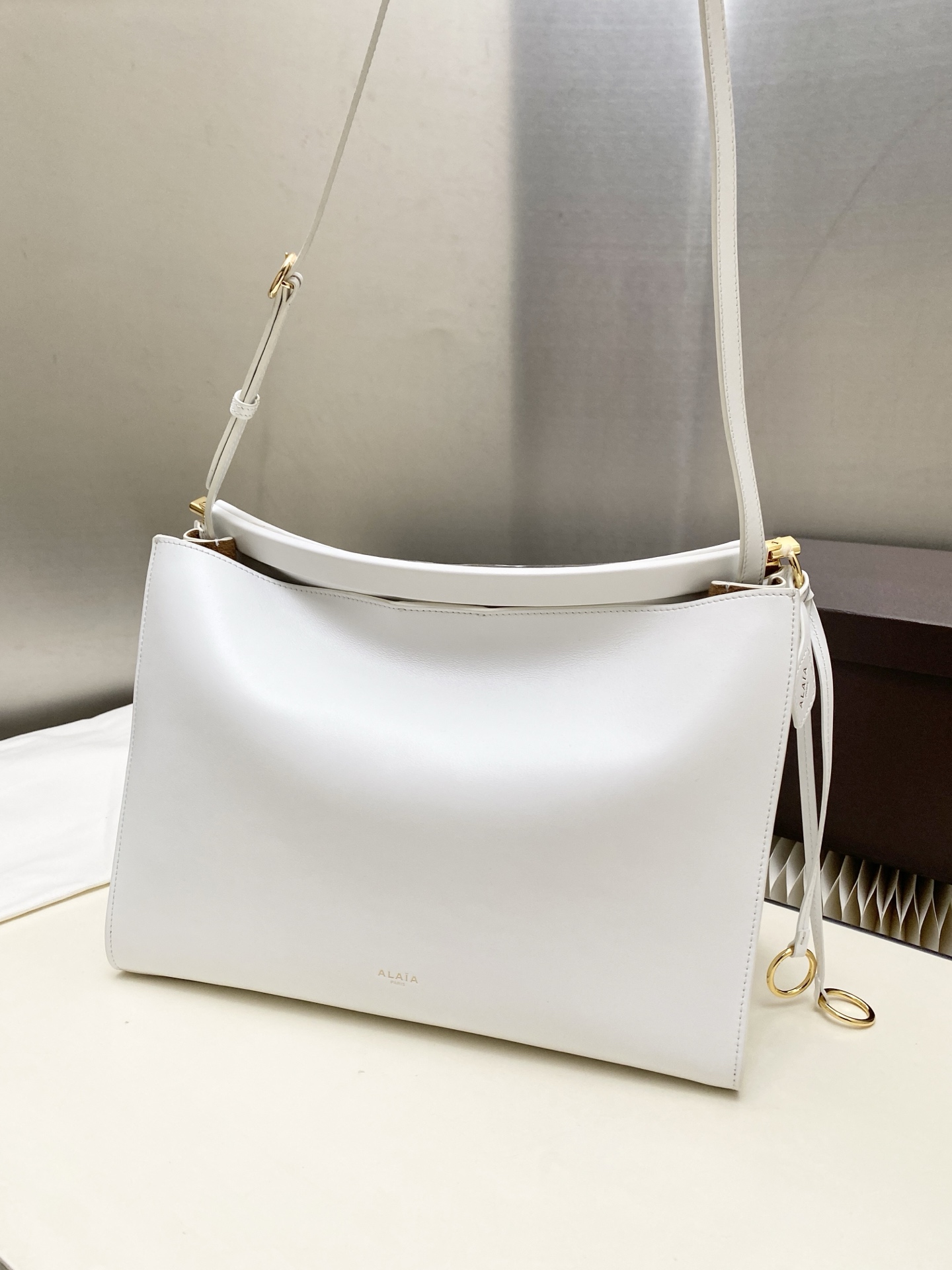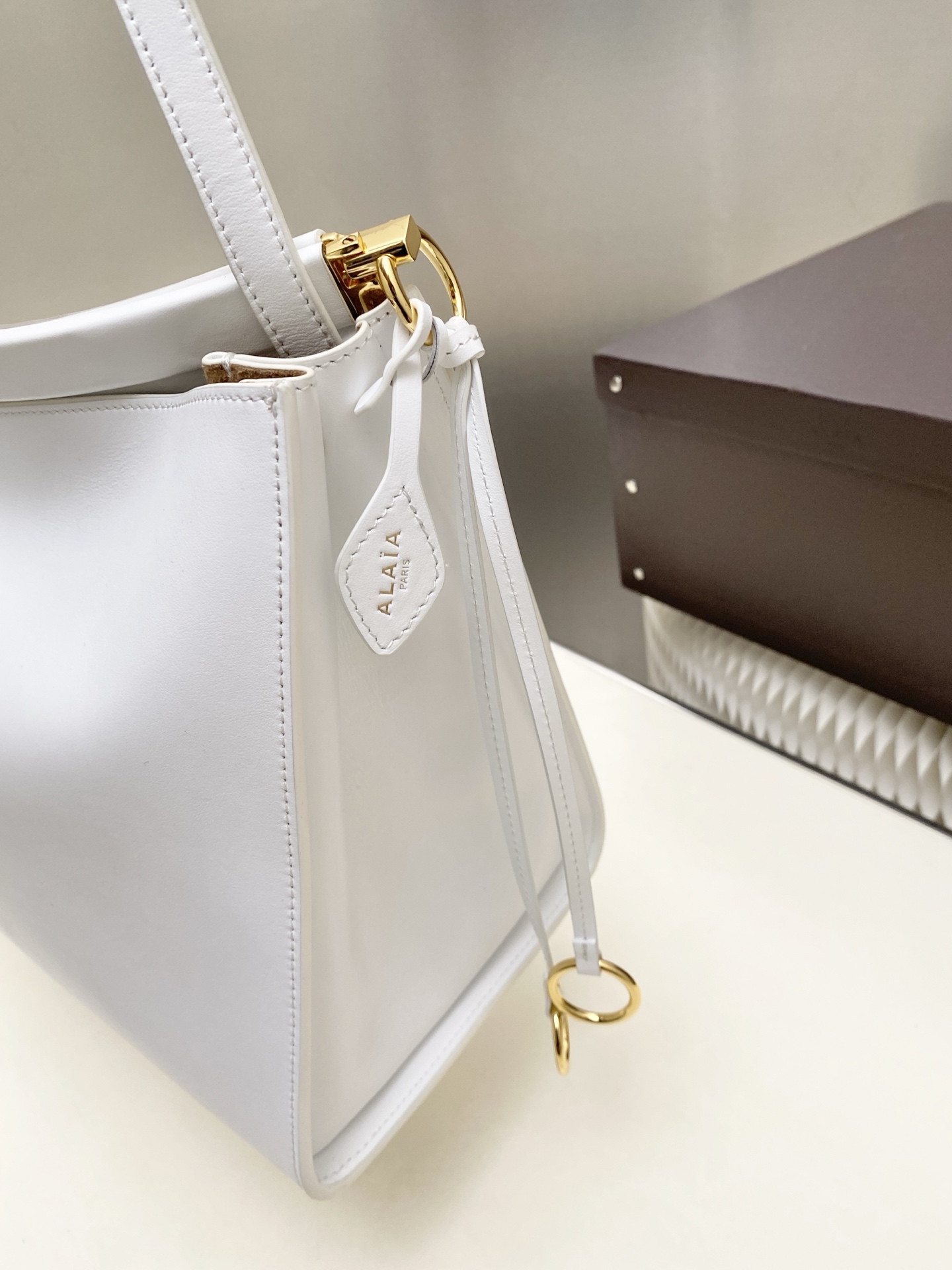 这款包包是AAAAA 1:1 质量 (非常棒). 使用了和原版一模一样的材料. 商标部分也保持了和Alaia一样. 图片拍摄是实物包包拍摄, 您所收到的实物保证和我们图片一模一样.