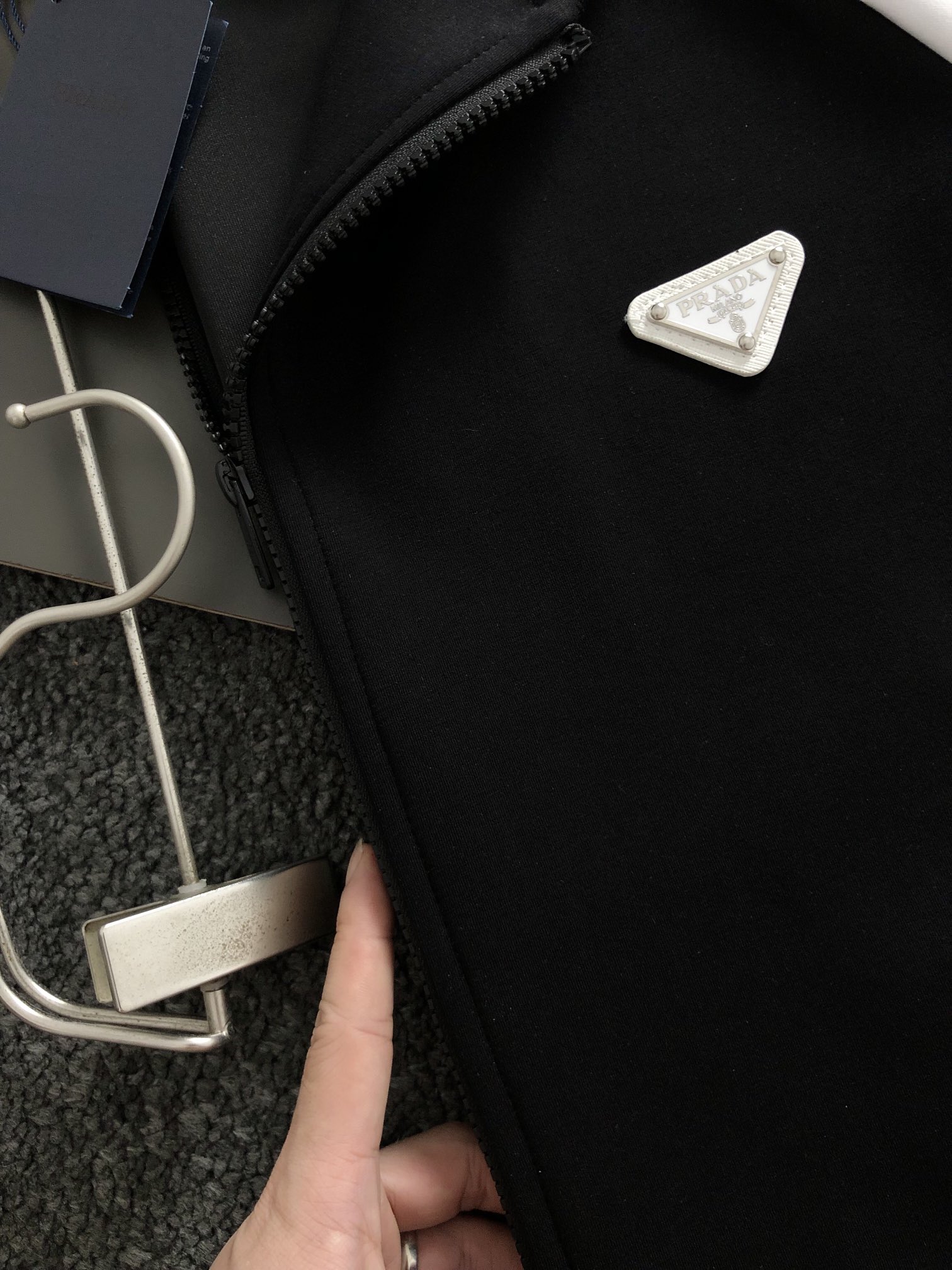 这款衣服是AAAAA 1:1 质量 (非常棒). 使用了和原版一模一样的材料. 商标部分也保持了和普拉达/Prada一样. 图片拍摄是实物衣服拍摄, 您所收到的实物保证和我们图片一模一样.