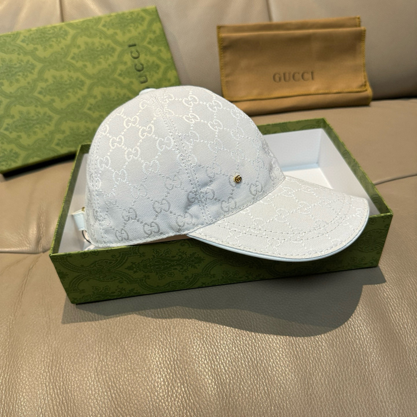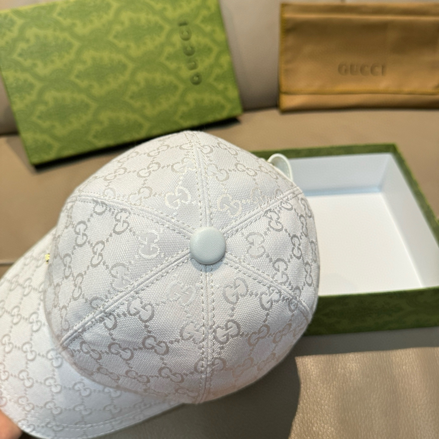 这款帽子是AAAAA 1:1 质量 (非常棒). 使用了和原版一模一样的材料. 商标部分也保持了和古奇/Gucci一样. 图片拍摄是实物帽子拍摄, 您所收到的实物保证和我们图片一模一样.