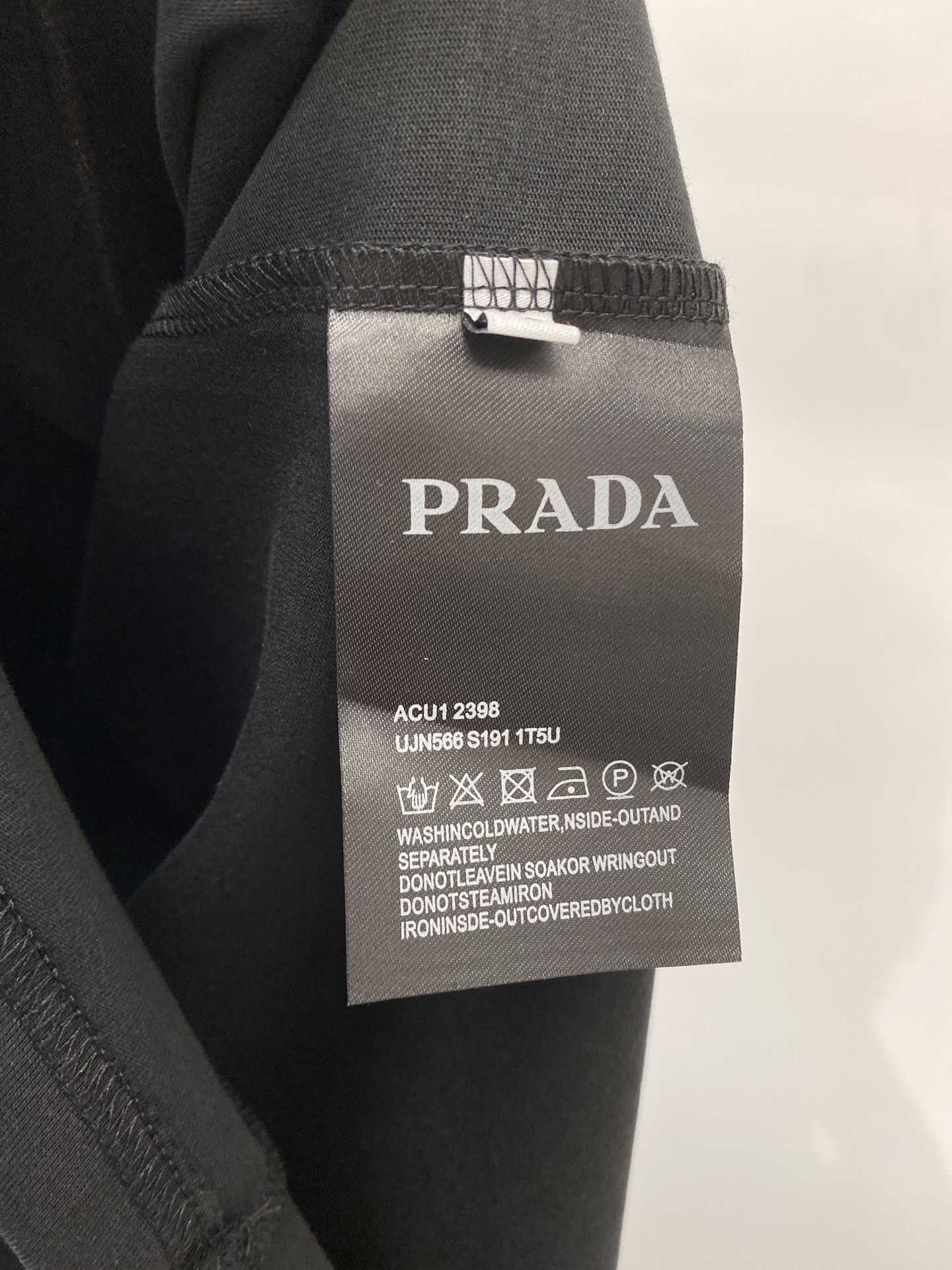 这款衣服是AAAAA 1:1 质量 (非常棒). 使用了和原版一模一样的材料. 商标部分也保持了和普拉达/Prada一样. 图片拍摄是实物衣服拍摄, 您所收到的实物保证和我们图片一模一样.