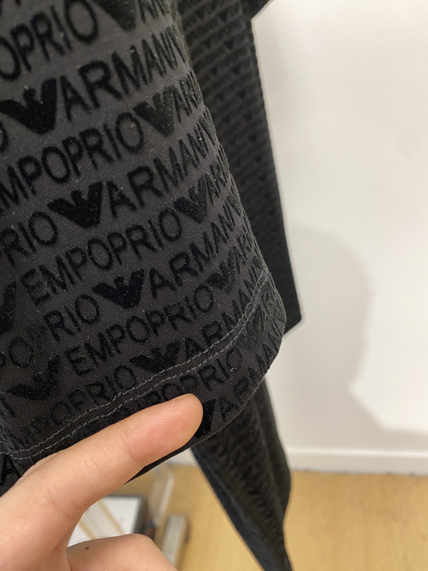 这款衣服是AAAAA 1:1 质量 (非常棒). 使用了和原版一模一样的材料. 商标部分也保持了和阿玛尼/Armani一样. 图片拍摄是实物衣服拍摄, 您所收到的实物保证和我们图片一模一样.