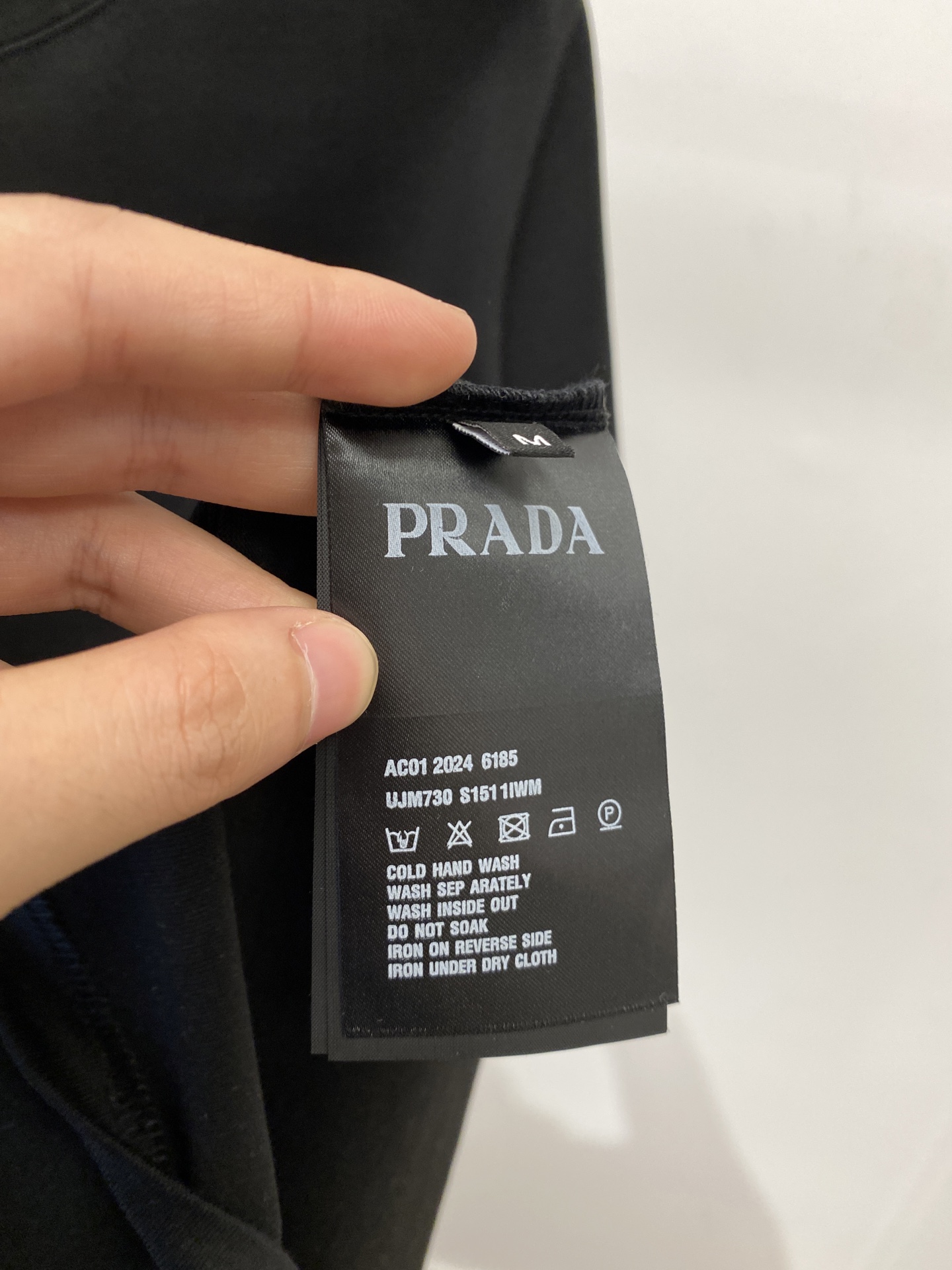 这款衣服是AAAAA 1:1 质量 (非常棒). 使用了和原版一模一样的材料. 商标部分也保持了和普拉达/Prada一样. 图片拍摄是实物衣服拍摄, 您所收到的实物保证和我们图片一模一样.