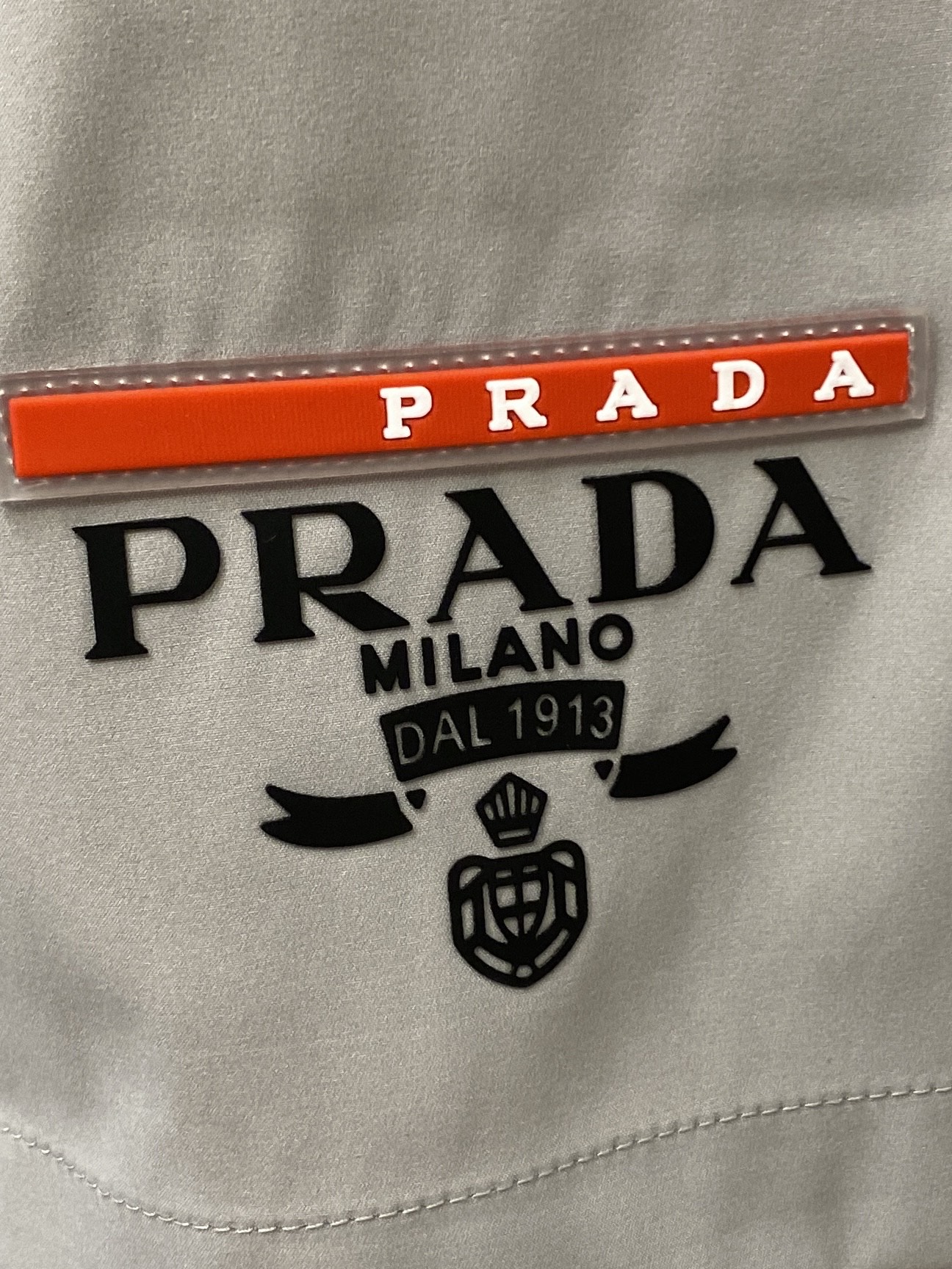 这款衣服是AAAAA 1:1 质量 (非常棒). 使用了和原版一模一样的材料. 商标部分也保持了和普拉达/Prada一样. 图片拍摄是实物衣服拍摄, 您所收到的实物保证和我们图片一模一样.