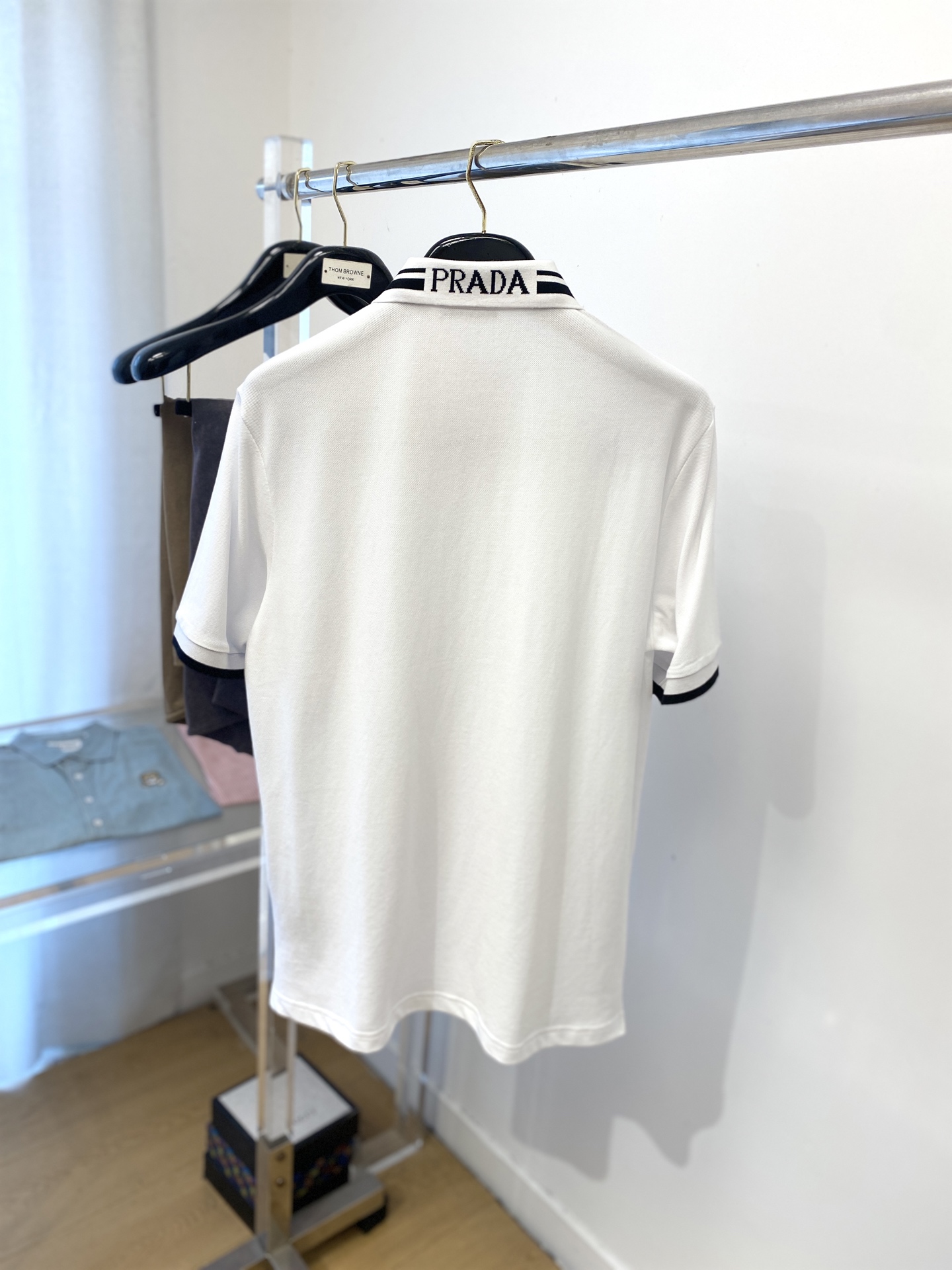 这款衣服是AAAAA 1:1 质量 (非常棒). 使用了和原版一模一样的材料. 商标部分也保持了和普拉达/Prada一样. 图片拍摄是实物衣服拍摄, 您所收到的实物保证和我们图片一模一样.