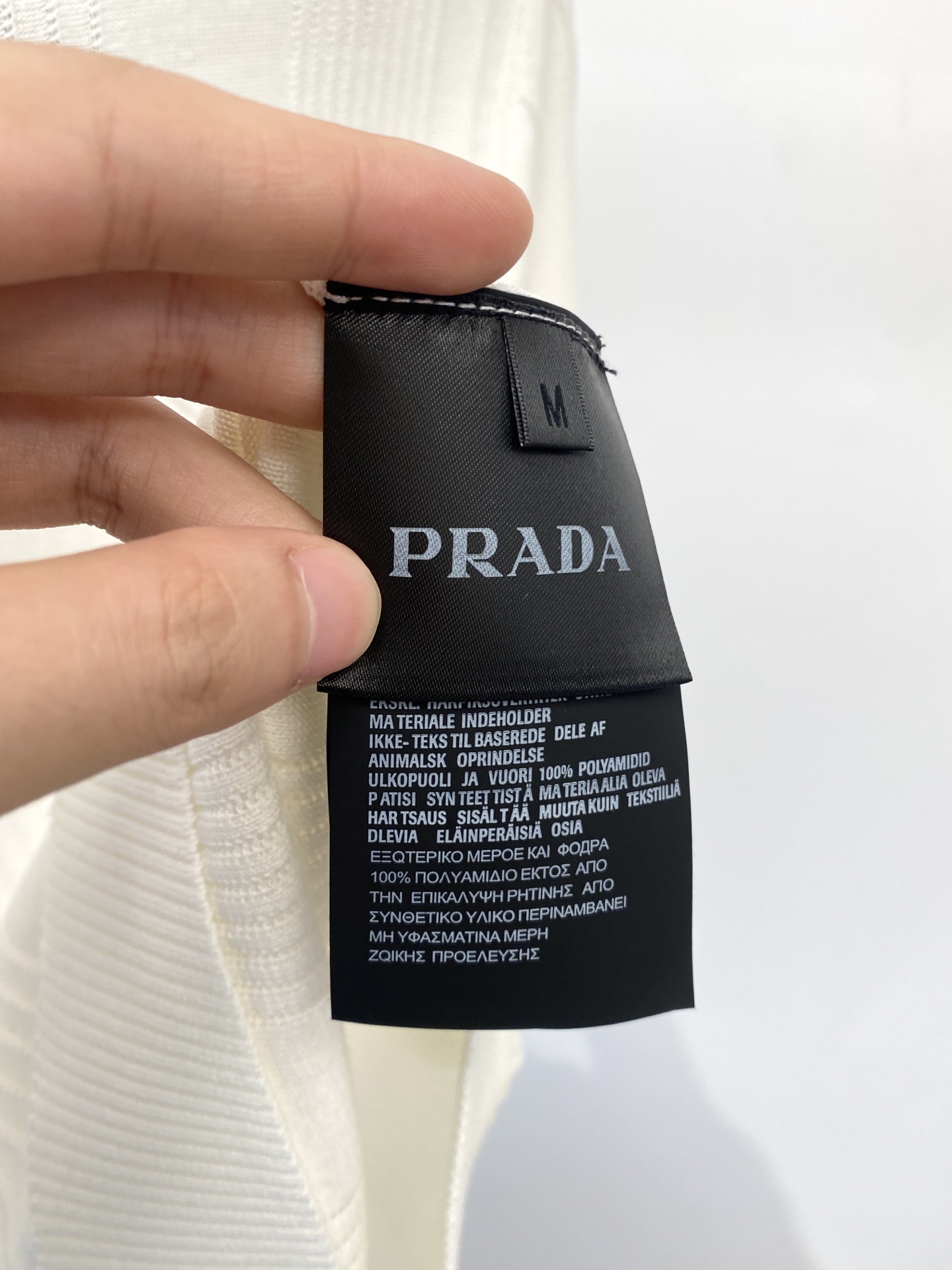这款衣服是AAAAA 1:1 质量 (非常棒). 使用了和原版一模一样的材料. 商标部分也保持了和普拉达/Prada一样. 图片拍摄是实物衣服拍摄, 您所收到的实物保证和我们图片一模一样.