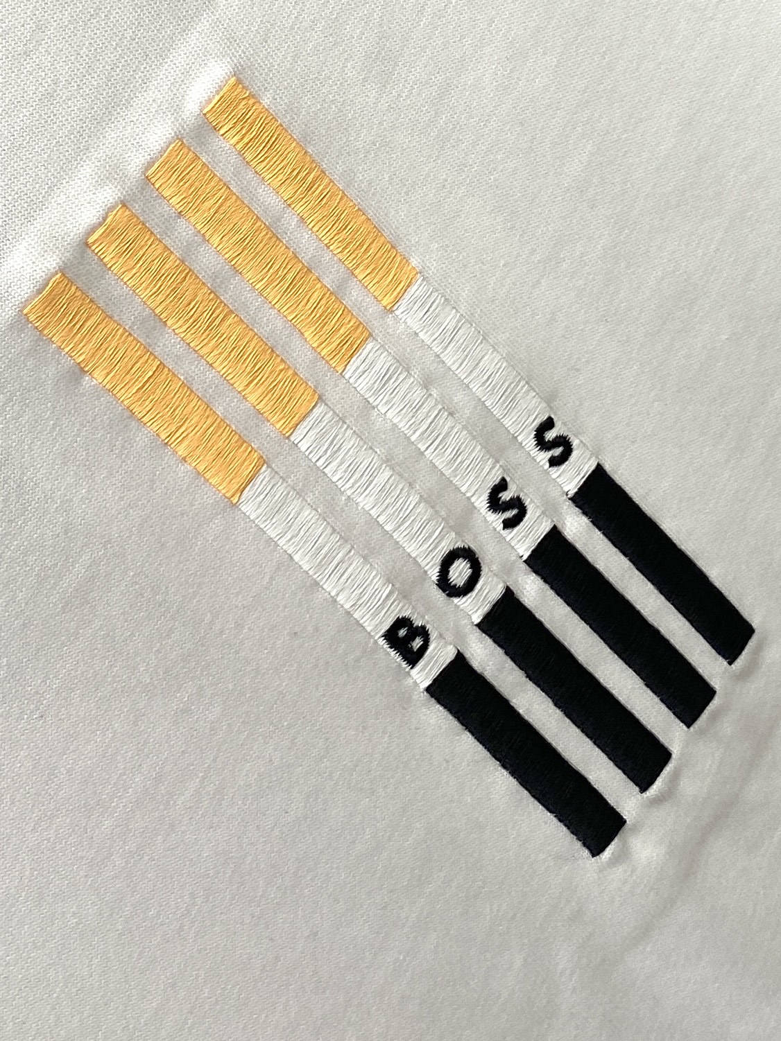 这款衣服是AAAAA 1:1 质量 (非常棒). 使用了和原版一模一样的材料. 商标部分也保持了和BOSS一样. 图片拍摄是实物衣服拍摄, 您所收到的实物保证和我们图片一模一样.