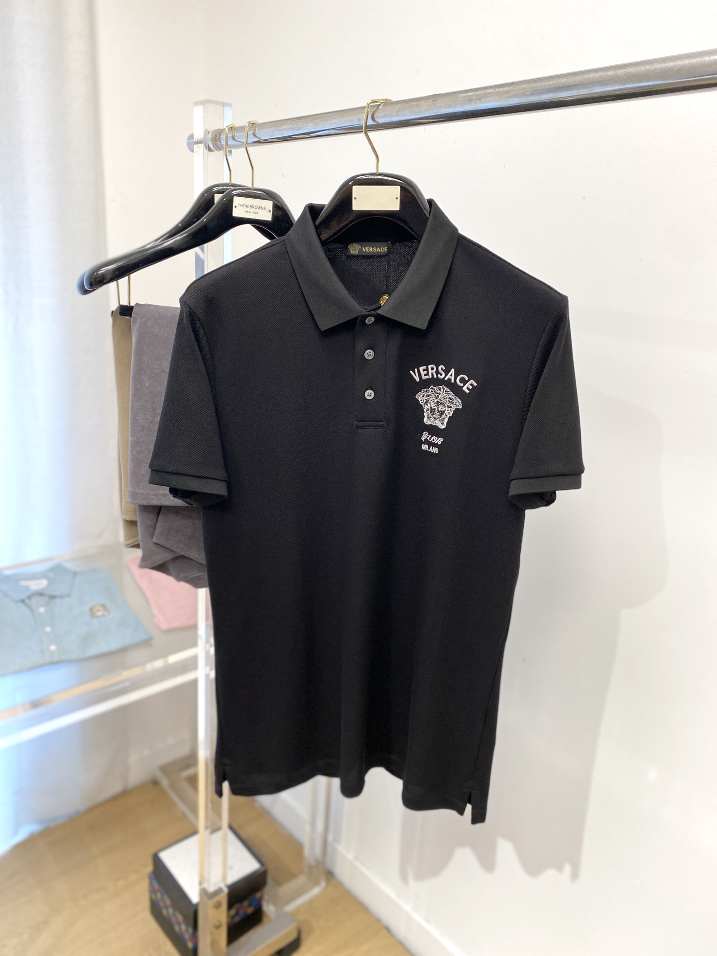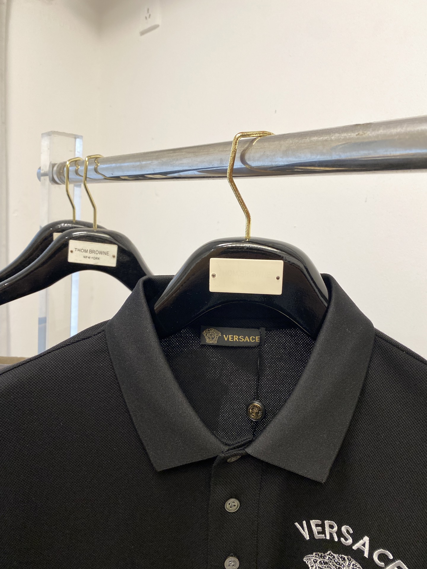 这款衣服是AAAAA 1:1 质量 (非常棒). 使用了和原版一模一样的材料. 商标部分也保持了和范思哲/Versace一样. 图片拍摄是实物衣服拍摄, 您所收到的实物保证和我们图片一模一样.