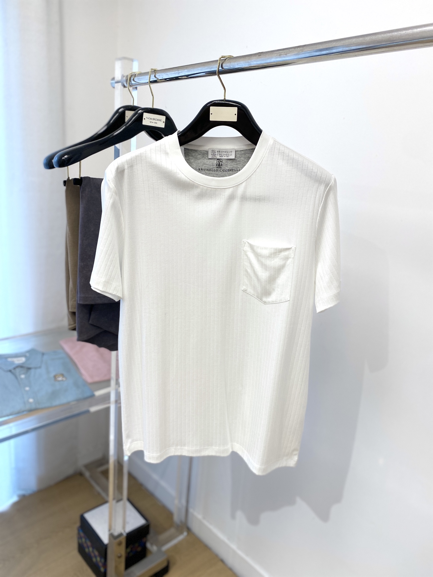 这款衣服是AAAAA 1:1 质量 (非常棒). 使用了和原版一模一样的材料. 商标部分也保持了和Brunello Cucinelli一样. 图片拍摄是实物衣服拍摄, 您所收到的实物保证和我们图片一模一样.
