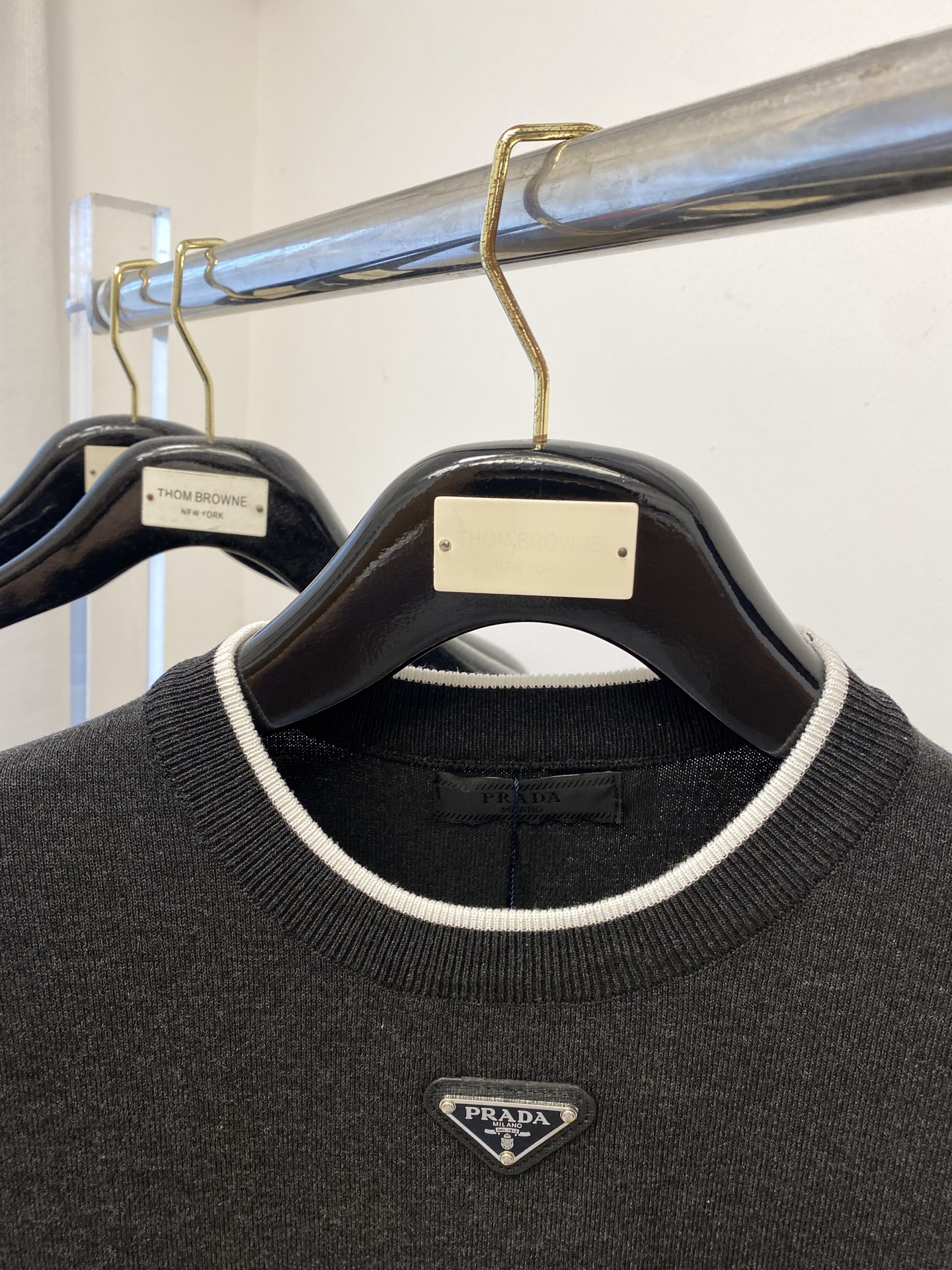 这款衣服是AAAAA 1:1 质量 (非常棒). 使用了和原版一模一样的材料. 商标部分也保持了和普拉达/Prada一样. 图片拍摄是实物衣服拍摄, 您所收到的实物保证和我们图片一模一样.