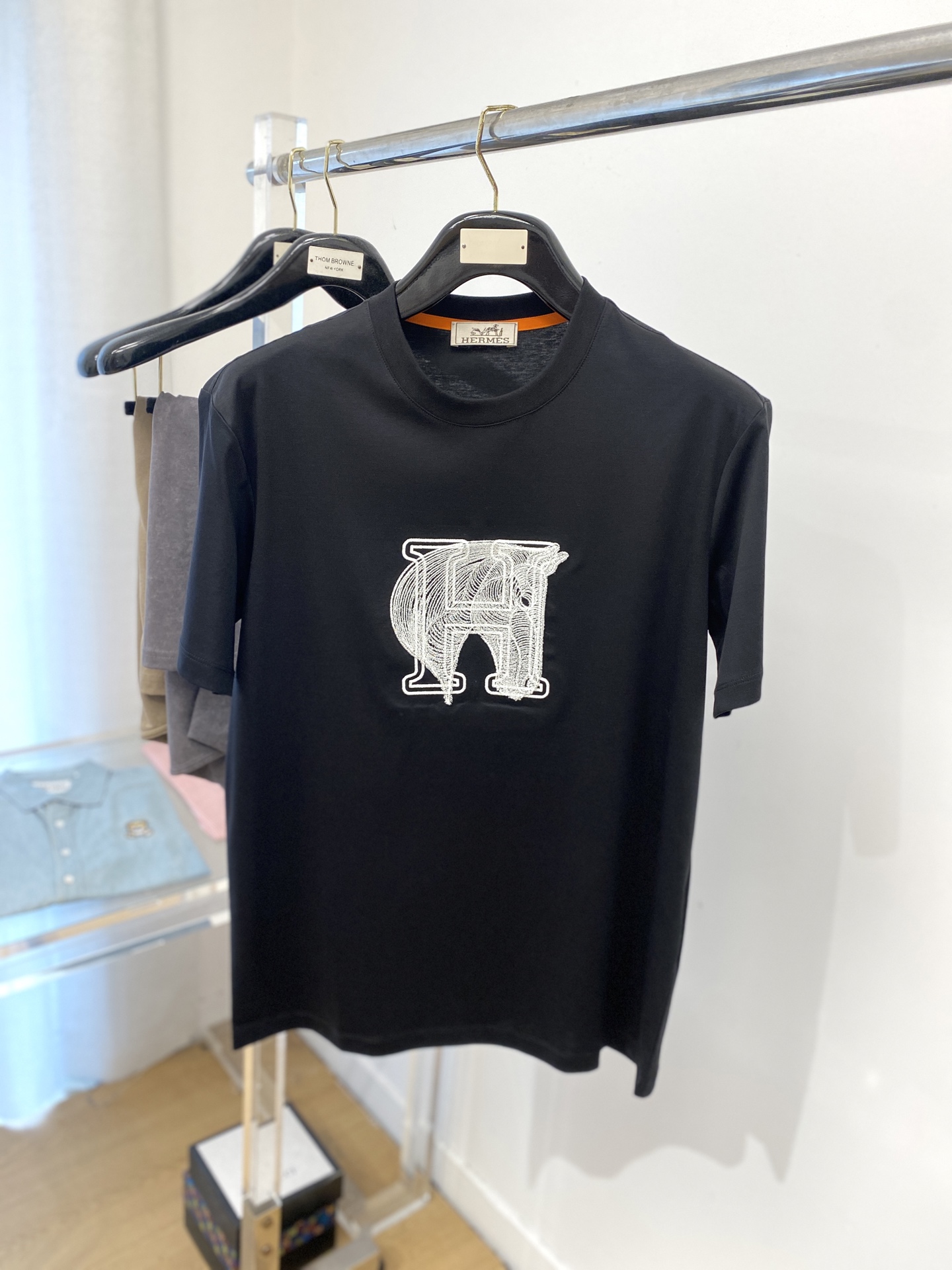 这款衣服是AAAAA 1:1 质量 (非常棒). 使用了和原版一模一样的材料. 商标部分也保持了和爱马仕/Hermes一样. 图片拍摄是实物衣服拍摄, 您所收到的实物保证和我们图片一模一样.