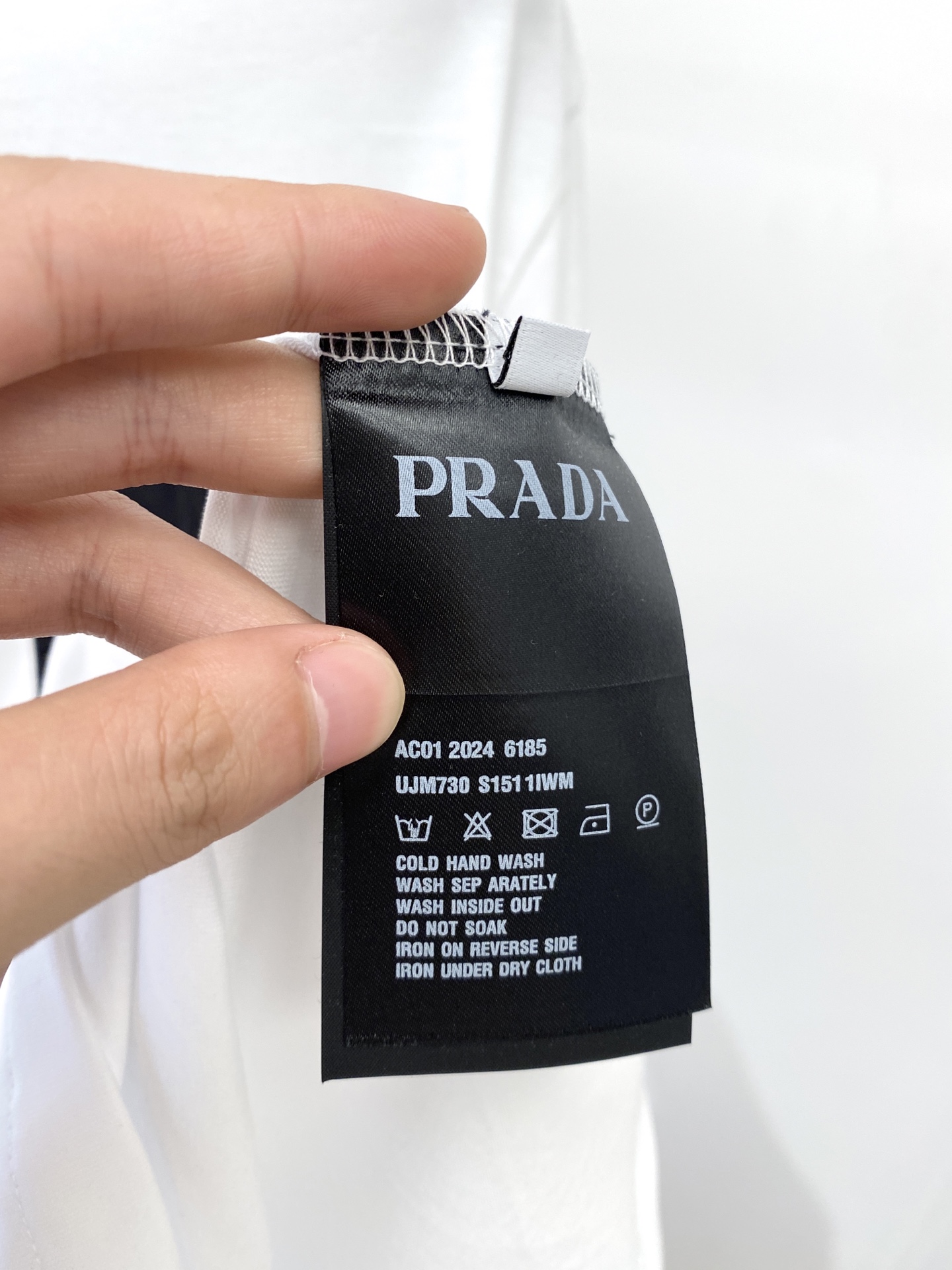 这款衣服是AAAAA 1:1 质量 (非常棒). 使用了和原版一模一样的材料. 商标部分也保持了和普拉达/Prada一样. 图片拍摄是实物衣服拍摄, 您所收到的实物保证和我们图片一模一样.