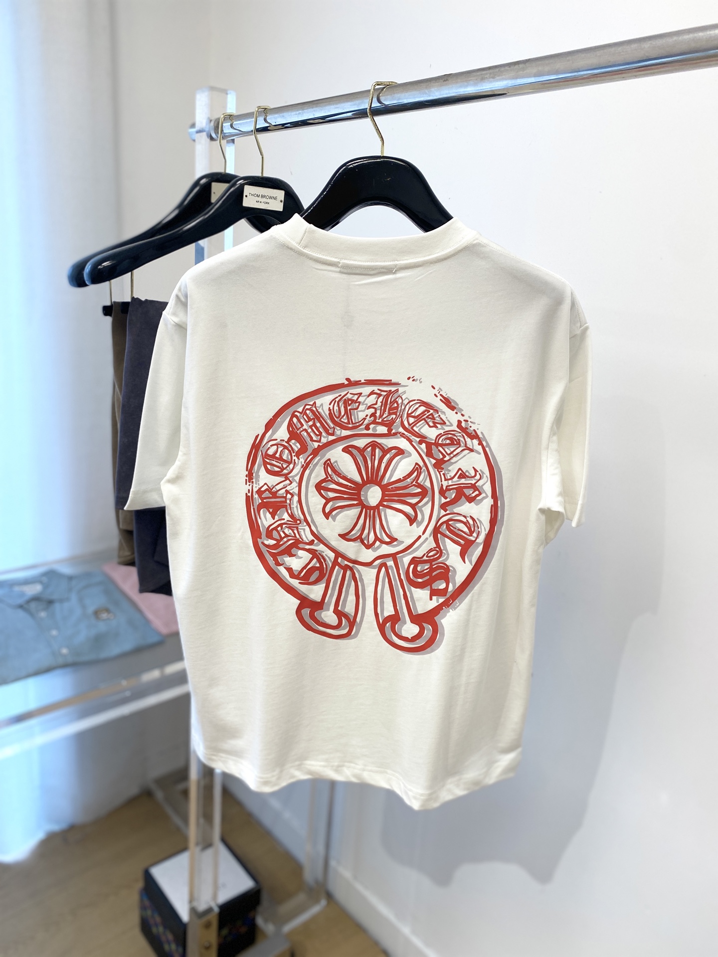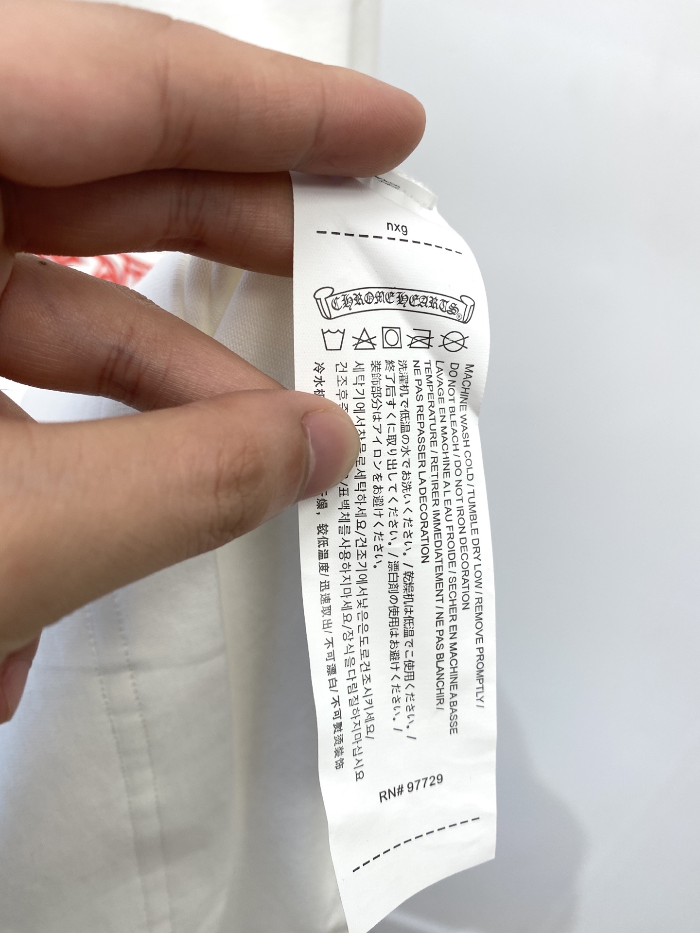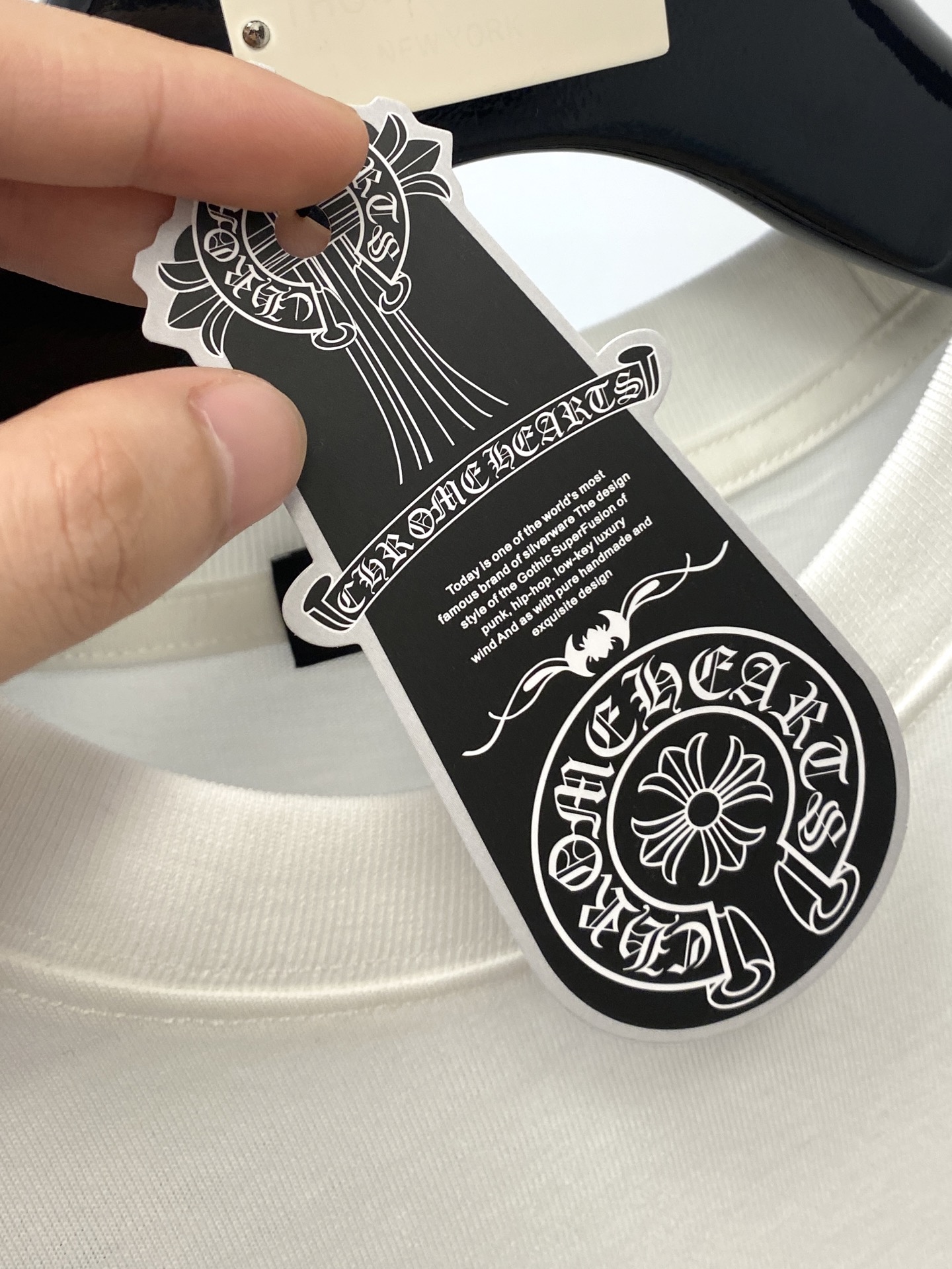 这款衣服是AAAAA 1:1 质量 (非常棒). 使用了和原版一模一样的材料. 商标部分也保持了和克罗心/Chrome Hearts一样. 图片拍摄是实物衣服拍摄, 您所收到的实物保证和我们图片一模一样.
