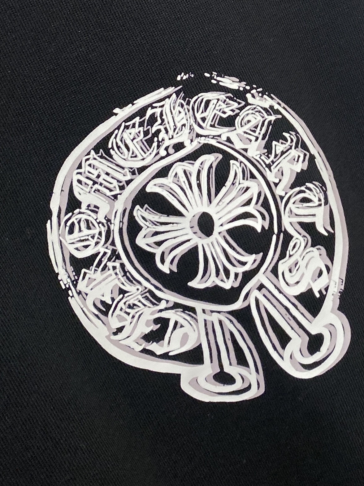 这款衣服是AAAAA 1:1 质量 (非常棒). 使用了和原版一模一样的材料. 商标部分也保持了和克罗心/Chrome Hearts一样. 图片拍摄是实物衣服拍摄, 您所收到的实物保证和我们图片一模一样.