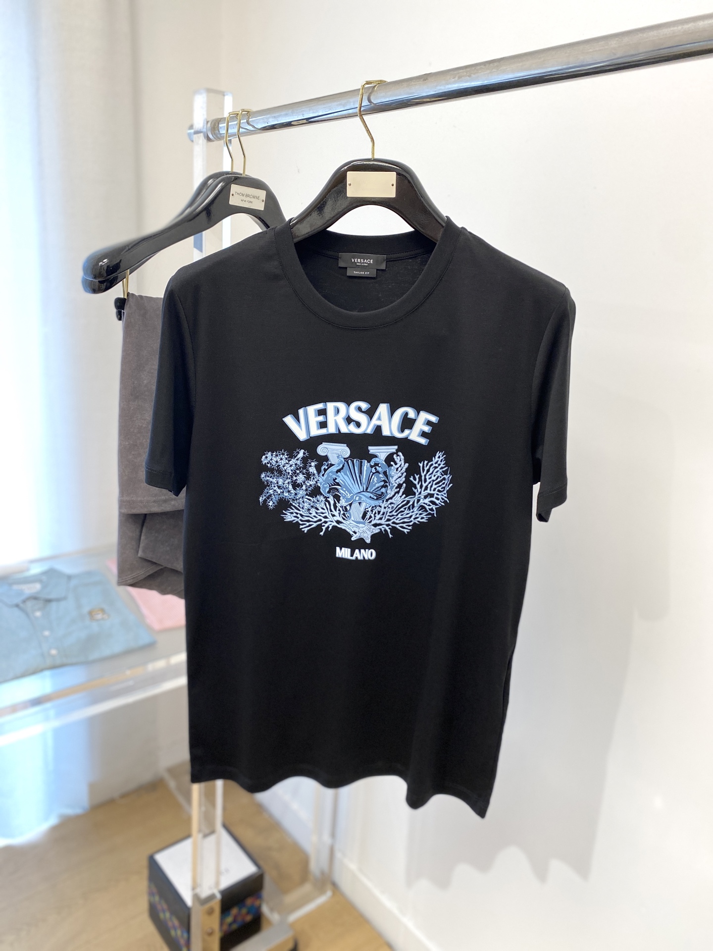 这款衣服是AAAAA 1:1 质量 (非常棒). 使用了和原版一模一样的材料. 商标部分也保持了和范思哲/Versace一样. 图片拍摄是实物衣服拍摄, 您所收到的实物保证和我们图片一模一样.