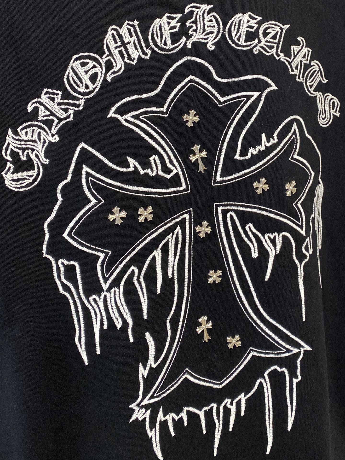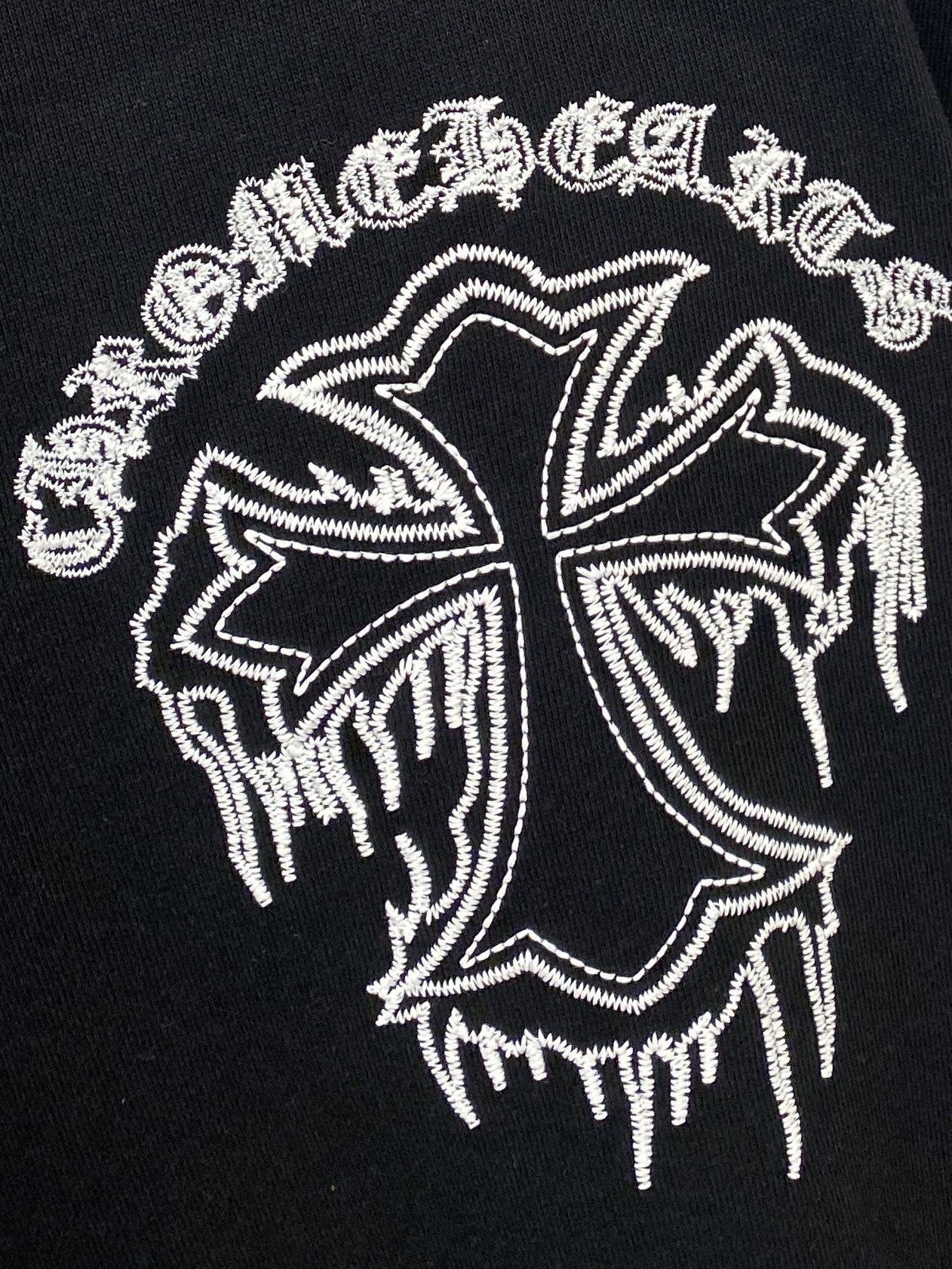 这款衣服是AAAAA 1:1 质量 (非常棒). 使用了和原版一模一样的材料. 商标部分也保持了和克罗心/Chrome Hearts一样. 图片拍摄是实物衣服拍摄, 您所收到的实物保证和我们图片一模一样.