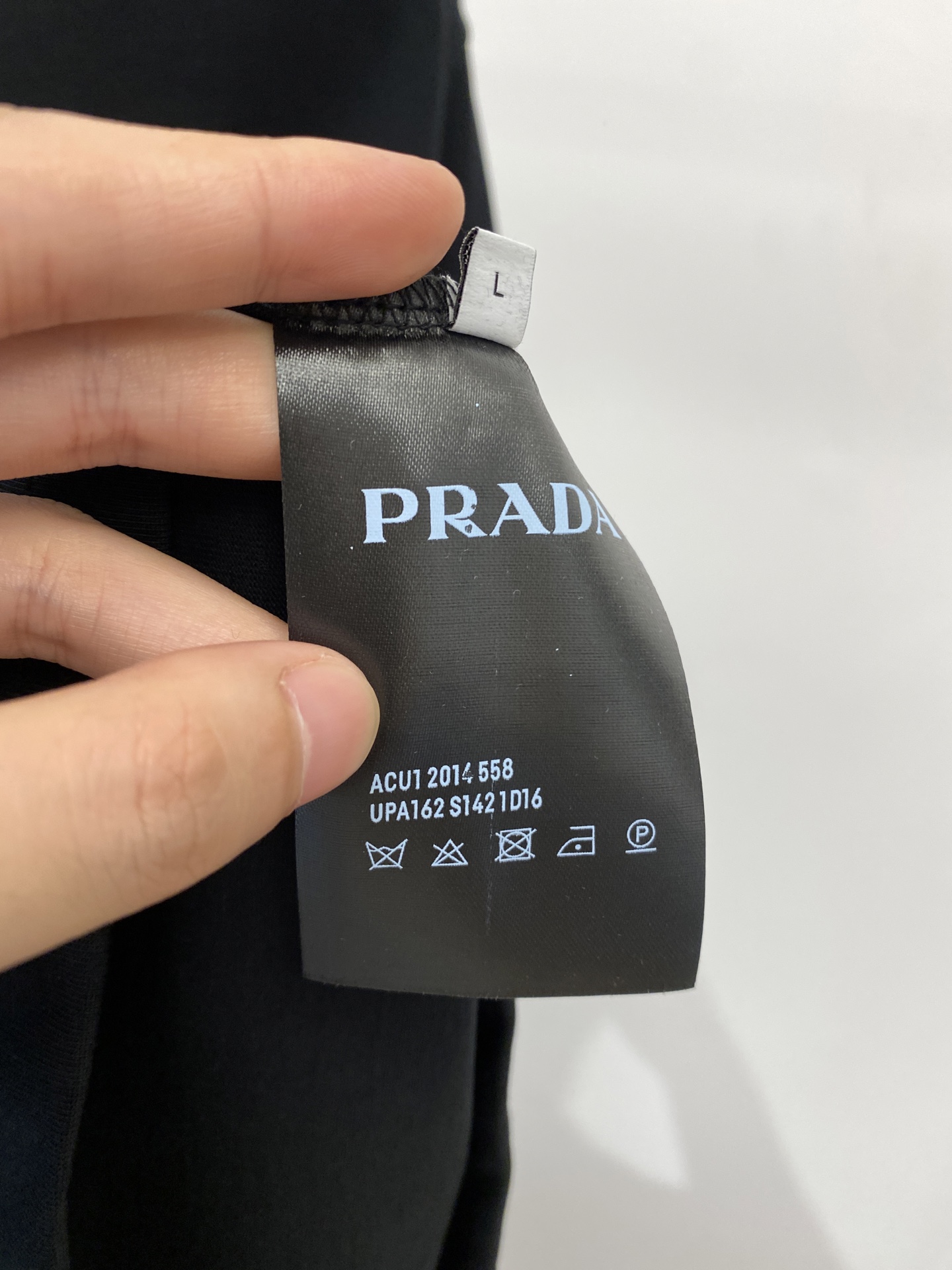 这款衣服是AAAAA 1:1 质量 (非常棒). 使用了和原版一模一样的材料. 商标部分也保持了和普拉达/Prada一样. 图片拍摄是实物衣服拍摄, 您所收到的实物保证和我们图片一模一样.