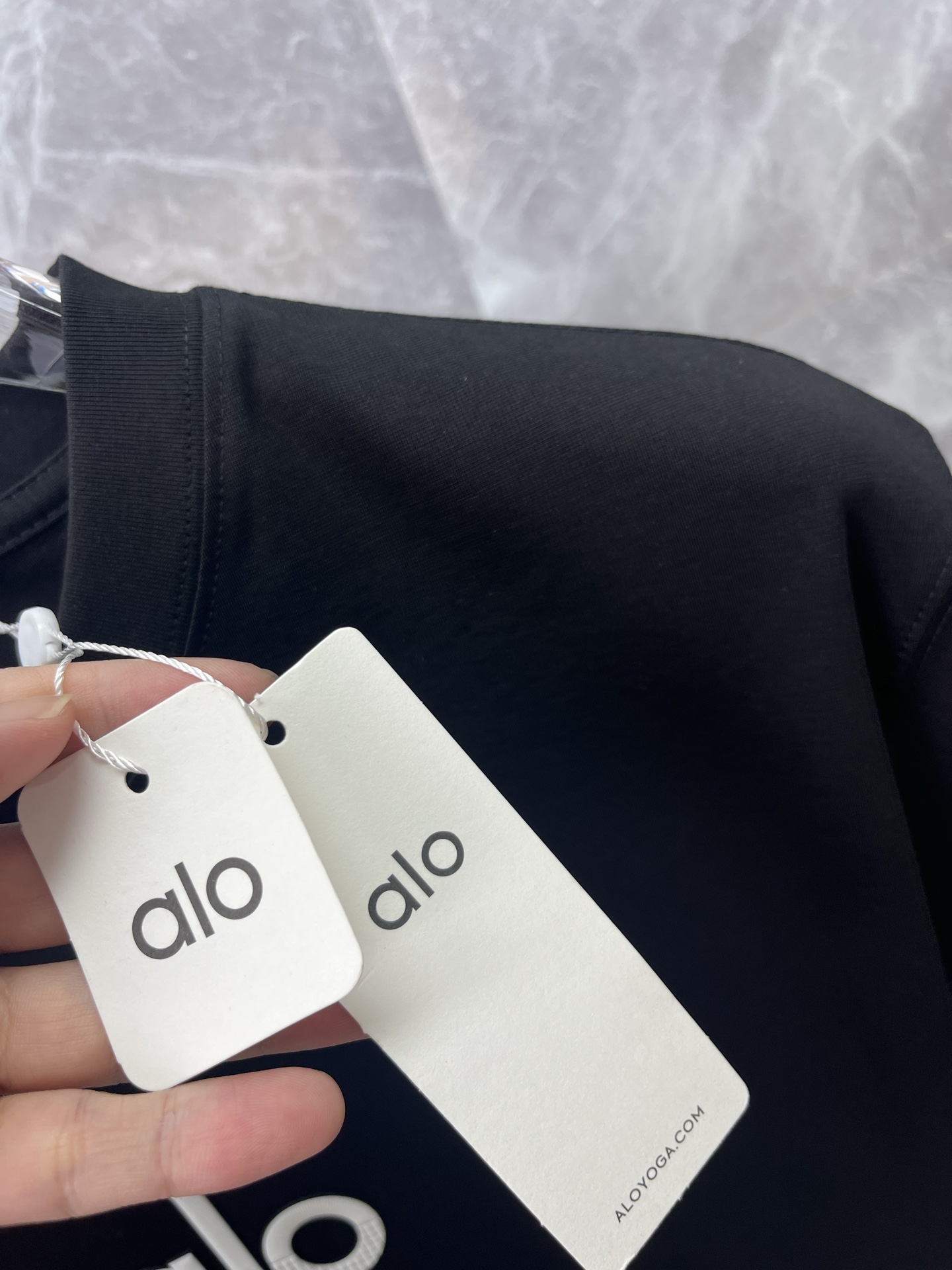 这款衣服是AAAAA 1:1 质量 (非常棒). 使用了和原版一模一样的材料. 商标部分也保持了和Alo Yoga一样. 图片拍摄是实物衣服拍摄, 您所收到的实物保证和我们图片一模一样.