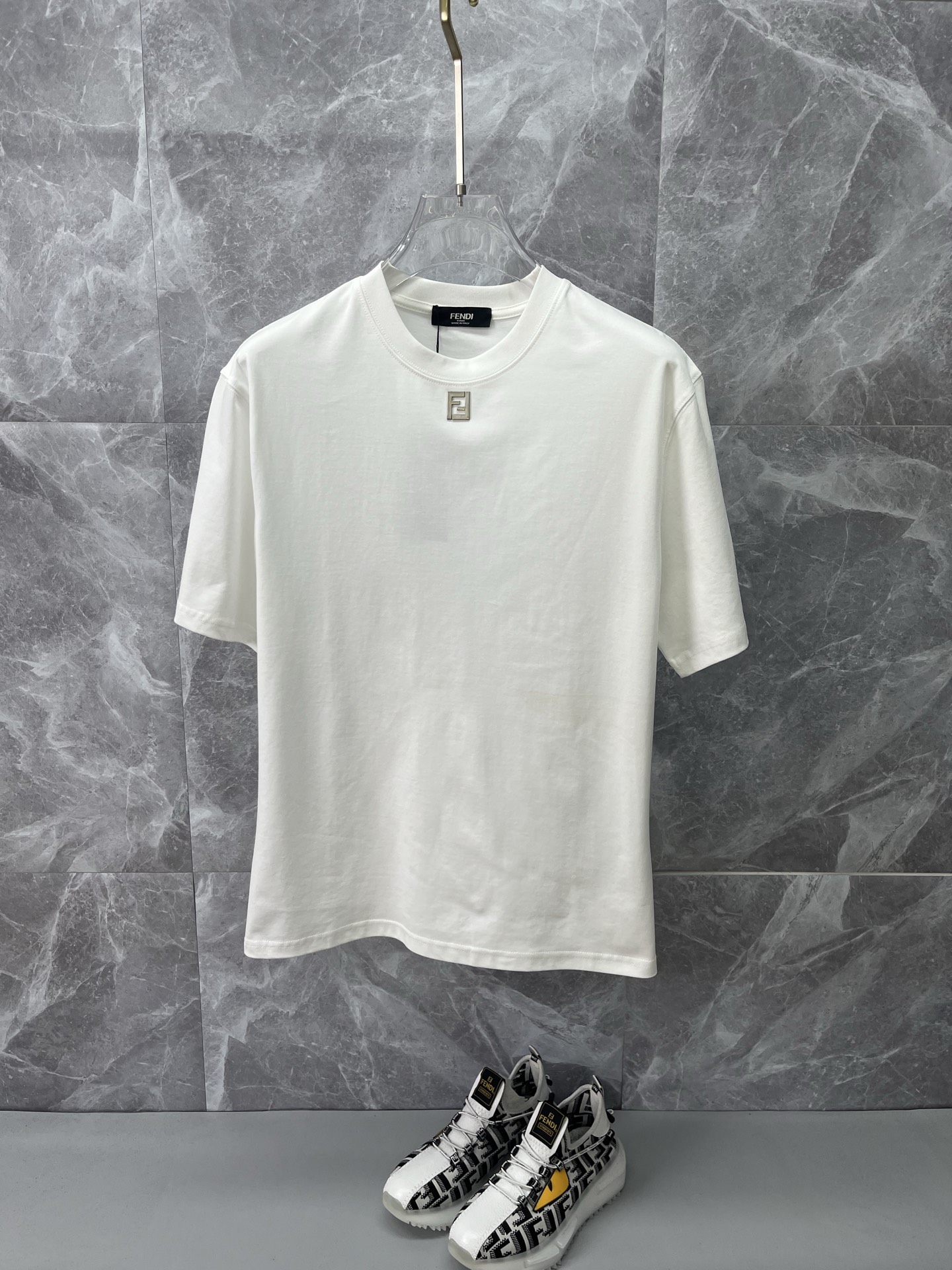 这款衣服是AAAAA 1:1 质量 (非常棒). 使用了和原版一模一样的材料. 商标部分也保持了和芬迪/Fendi一样. 图片拍摄是实物衣服拍摄, 您所收到的实物保证和我们图片一模一样.