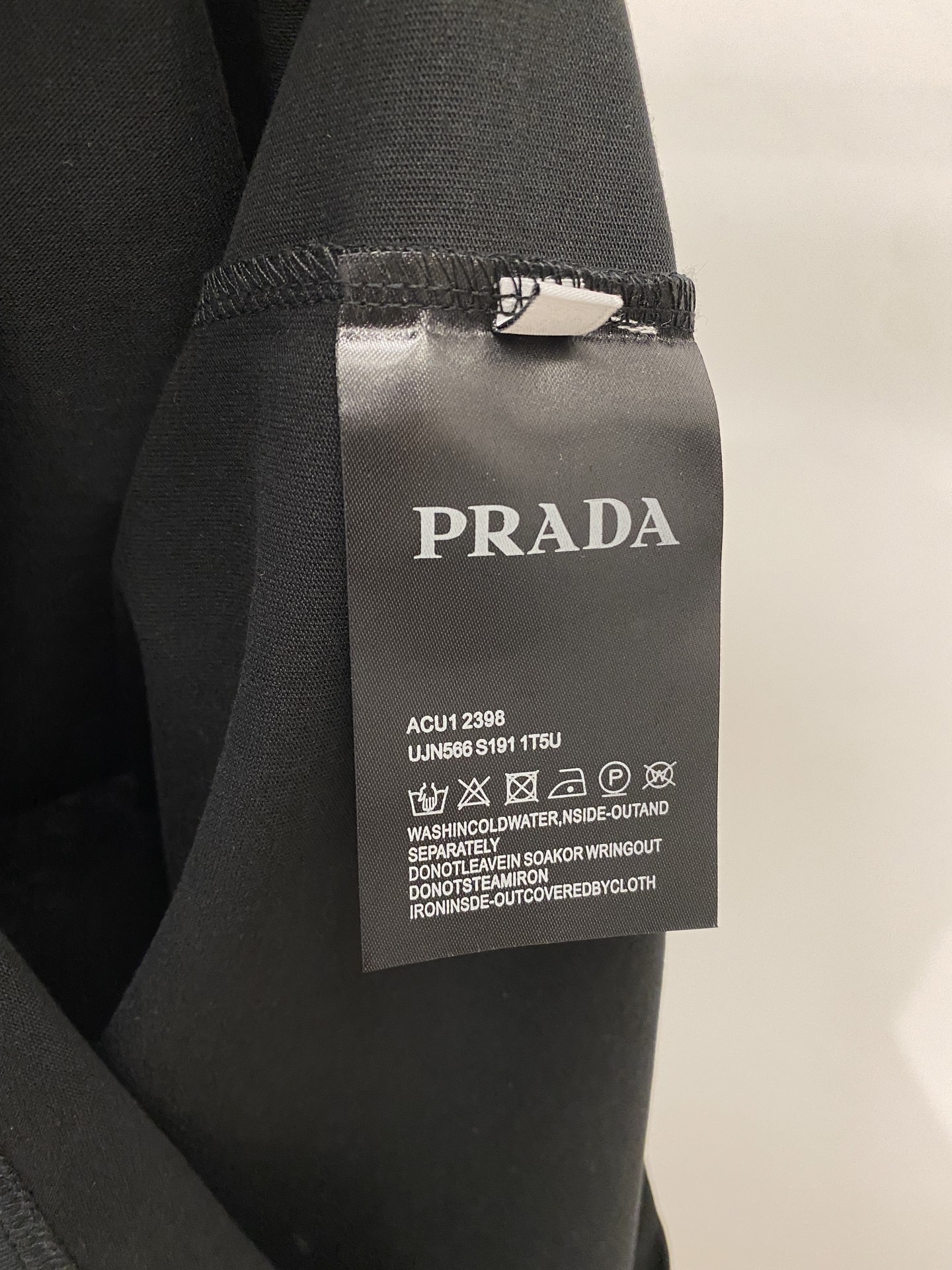 这款衣服是AAAAA 1:1 质量 (非常棒). 使用了和原版一模一样的材料. 商标部分也保持了和普拉达/Prada一样. 图片拍摄是实物衣服拍摄, 您所收到的实物保证和我们图片一模一样.