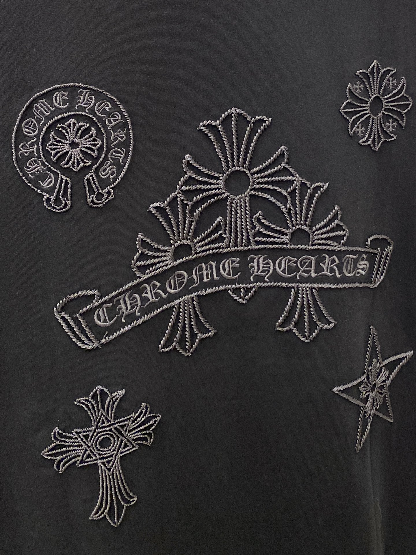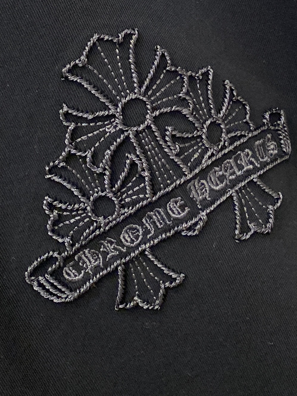 这款衣服是AAAAA 1:1 质量 (非常棒). 使用了和原版一模一样的材料. 商标部分也保持了和克罗心/Chrome Hearts一样. 图片拍摄是实物衣服拍摄, 您所收到的实物保证和我们图片一模一样.