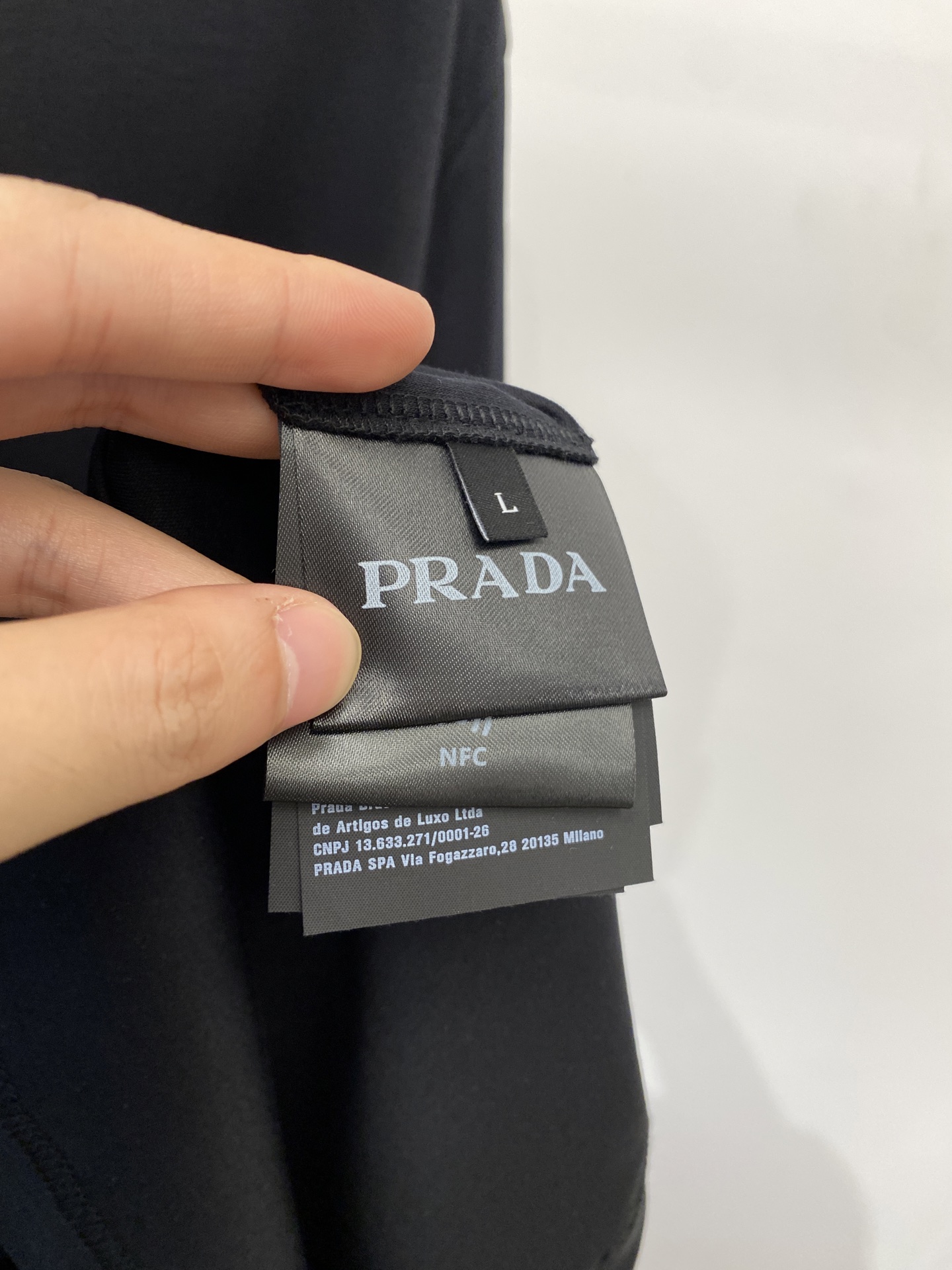 这款衣服是AAAAA 1:1 质量 (非常棒). 使用了和原版一模一样的材料. 商标部分也保持了和普拉达/Prada一样. 图片拍摄是实物衣服拍摄, 您所收到的实物保证和我们图片一模一样.