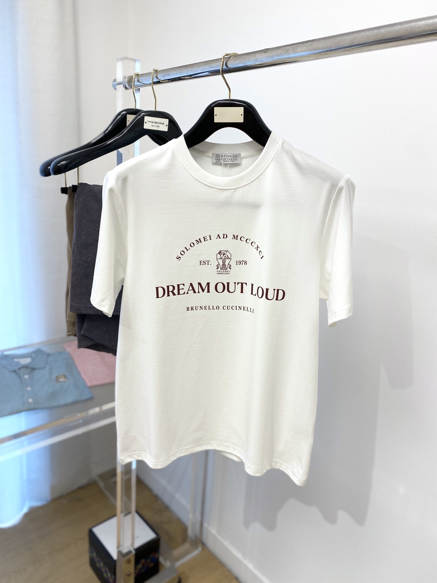 这款衣服是AAAAA 1:1 质量 (非常棒). 使用了和原版一模一样的材料. 商标部分也保持了和Brunello Cucinelli一样. 图片拍摄是实物衣服拍摄, 您所收到的实物保证和我们图片一模一样.