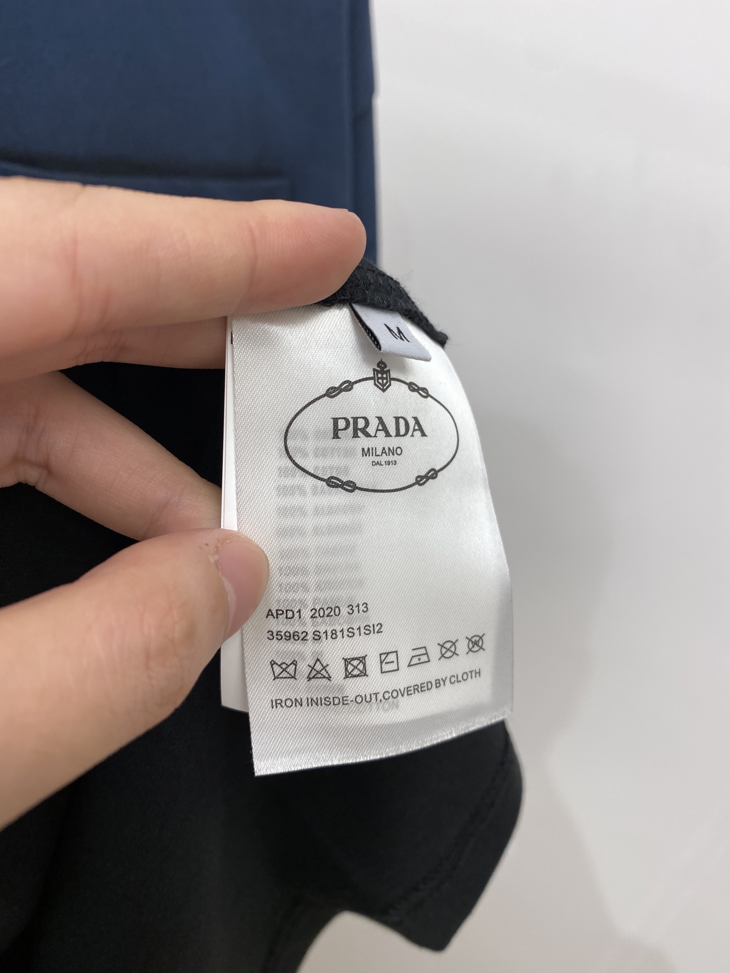 这款衣服是AAAAA 1:1 质量 (非常棒). 使用了和原版一模一样的材料. 商标部分也保持了和普拉达/Prada一样. 图片拍摄是实物衣服拍摄, 您所收到的实物保证和我们图片一模一样.
