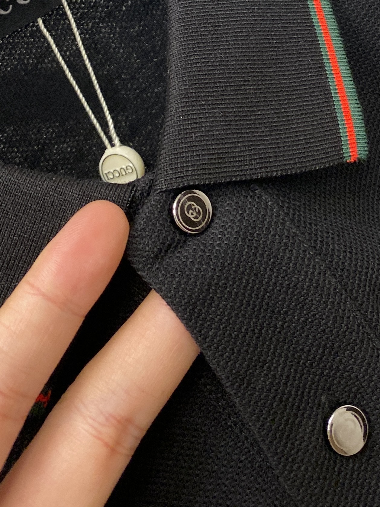 这款衣服是AAAAA 1:1 质量 (非常棒). 使用了和原版一模一样的材料. 商标部分也保持了和古奇/Gucci一样. 图片拍摄是实物衣服拍摄, 您所收到的实物保证和我们图片一模一样.