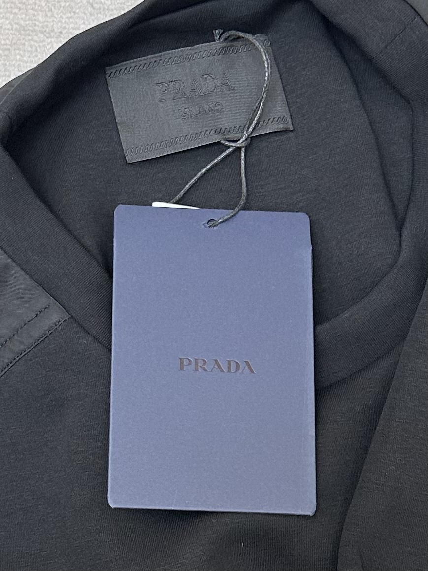 这款衣服是AAAAA 1:1 质量 (非常棒). 使用了和原版一模一样的材料. 商标部分也保持了和普拉达/Prada一样. 图片拍摄是实物衣服拍摄, 您所收到的实物保证和我们图片一模一样.
