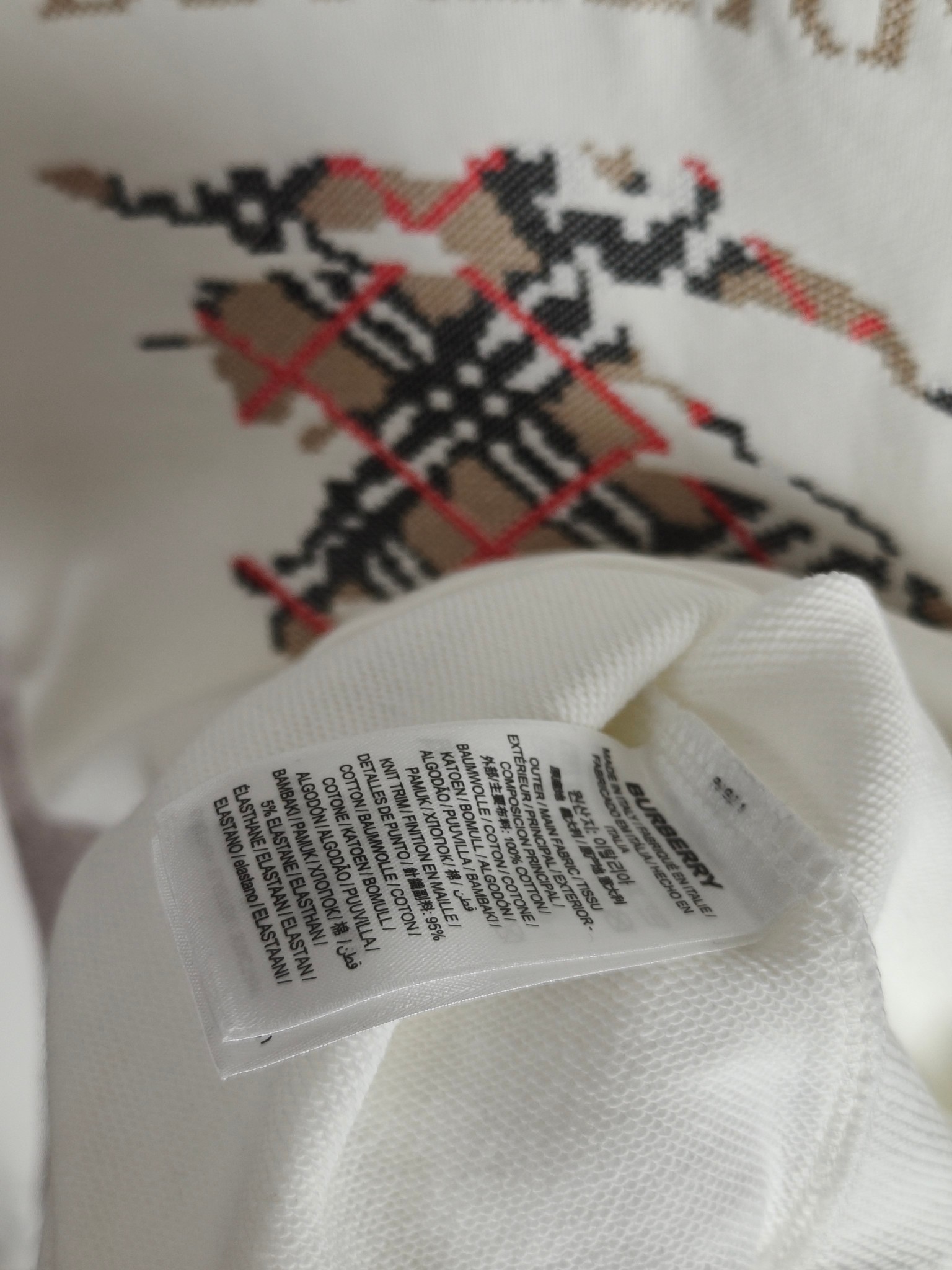 这款衣服是AAAAA 1:1 质量 (非常棒). 使用了和原版一模一样的材料. 商标部分也保持了和巴宝莉/Burberry一样. 图片拍摄是实物衣服拍摄, 您所收到的实物保证和我们图片一模一样.