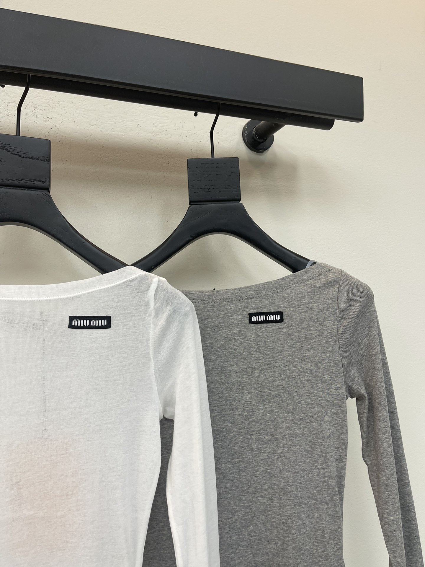 这款衣服是AAAAA 1:1 质量 (非常棒). 使用了和原版一模一样的材料. 商标部分也保持了和缪缪/Miu Miu一样. 图片拍摄是实物衣服拍摄, 您所收到的实物保证和我们图片一模一样.
