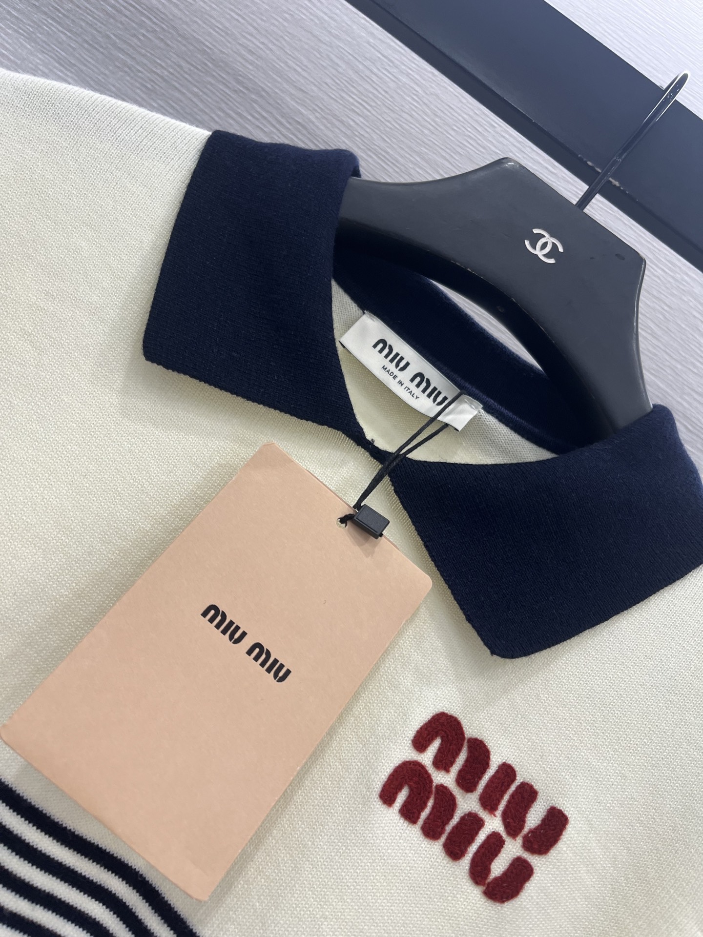 这款衣服是AAAAA 1:1 质量 (非常棒). 使用了和原版一模一样的材料. 商标部分也保持了和缪缪/Miu Miu一样. 图片拍摄是实物衣服拍摄, 您所收到的实物保证和我们图片一模一样.