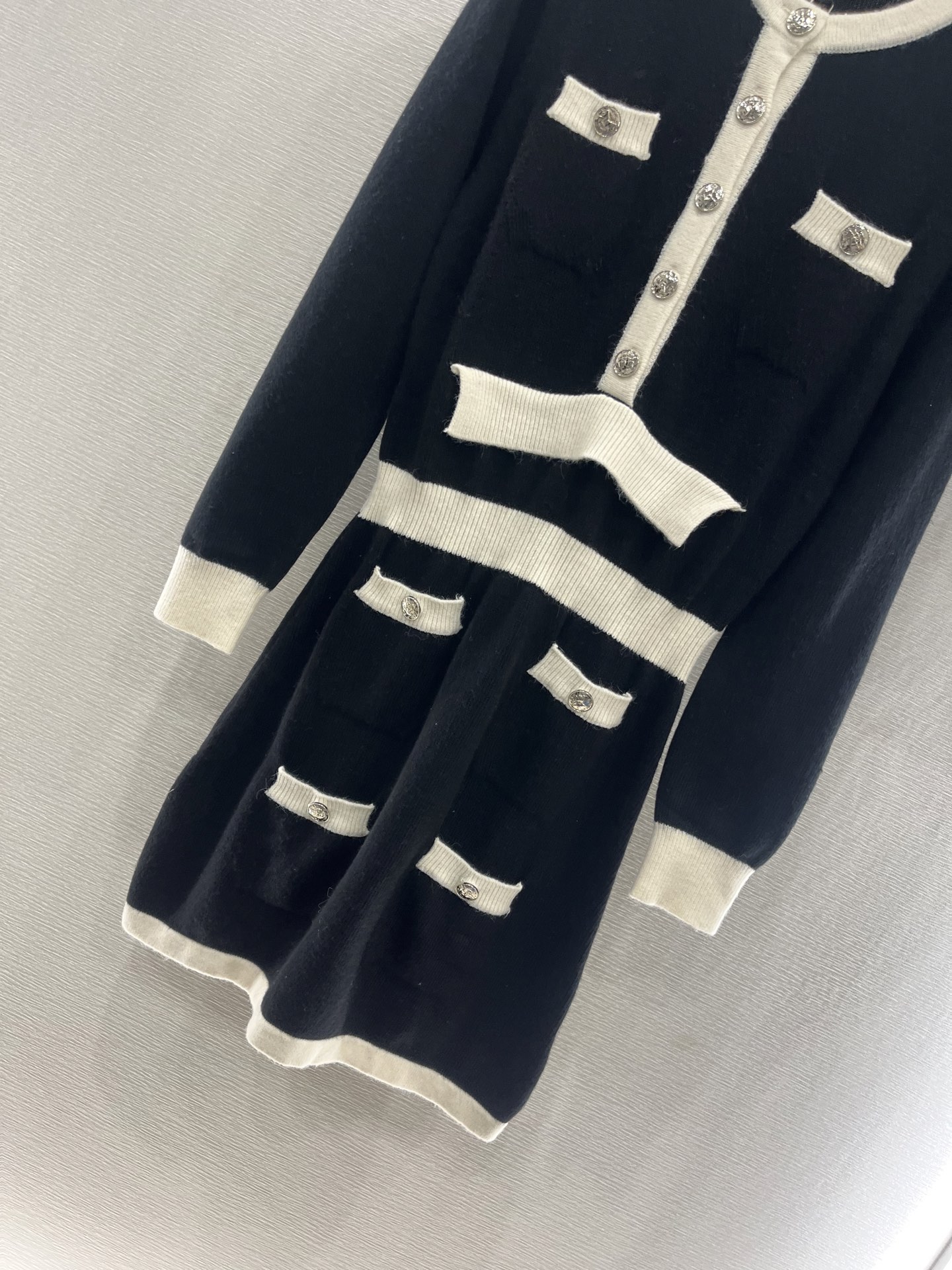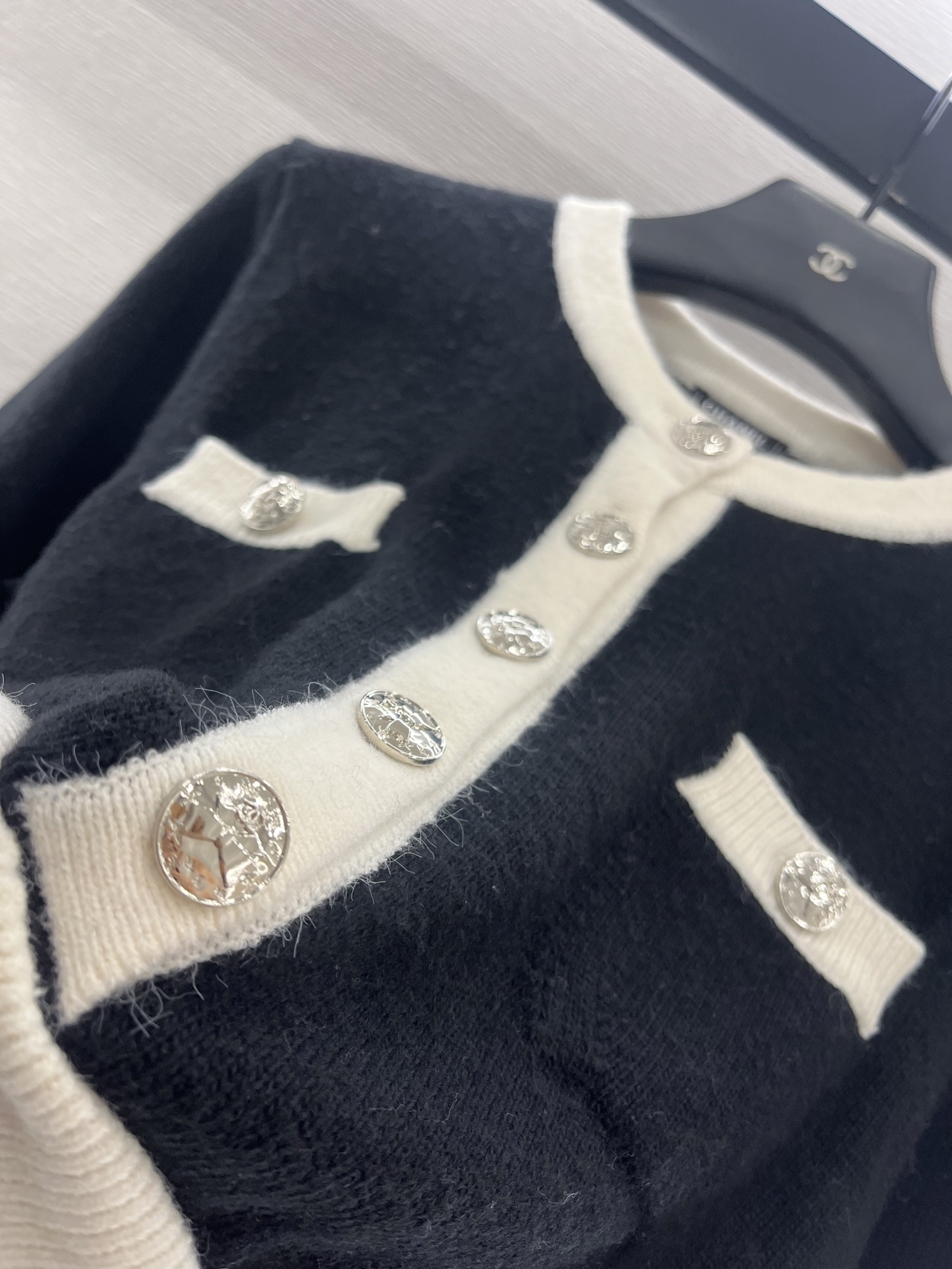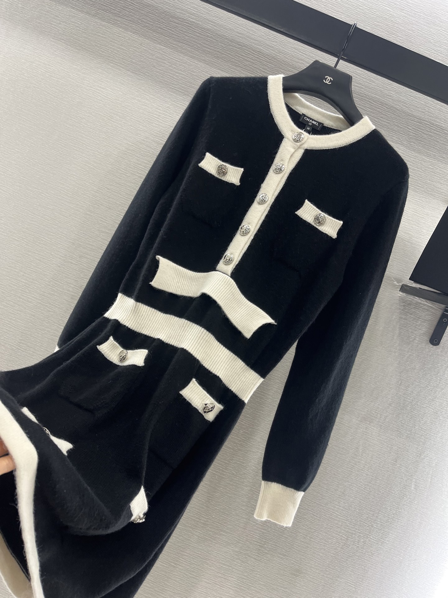 这款衣服是AAAAA 1:1 质量 (非常棒). 使用了和原版一模一样的材料. 商标部分也保持了和香奈儿/Chanel一样. 图片拍摄是实物衣服拍摄, 您所收到的实物保证和我们图片一模一样.