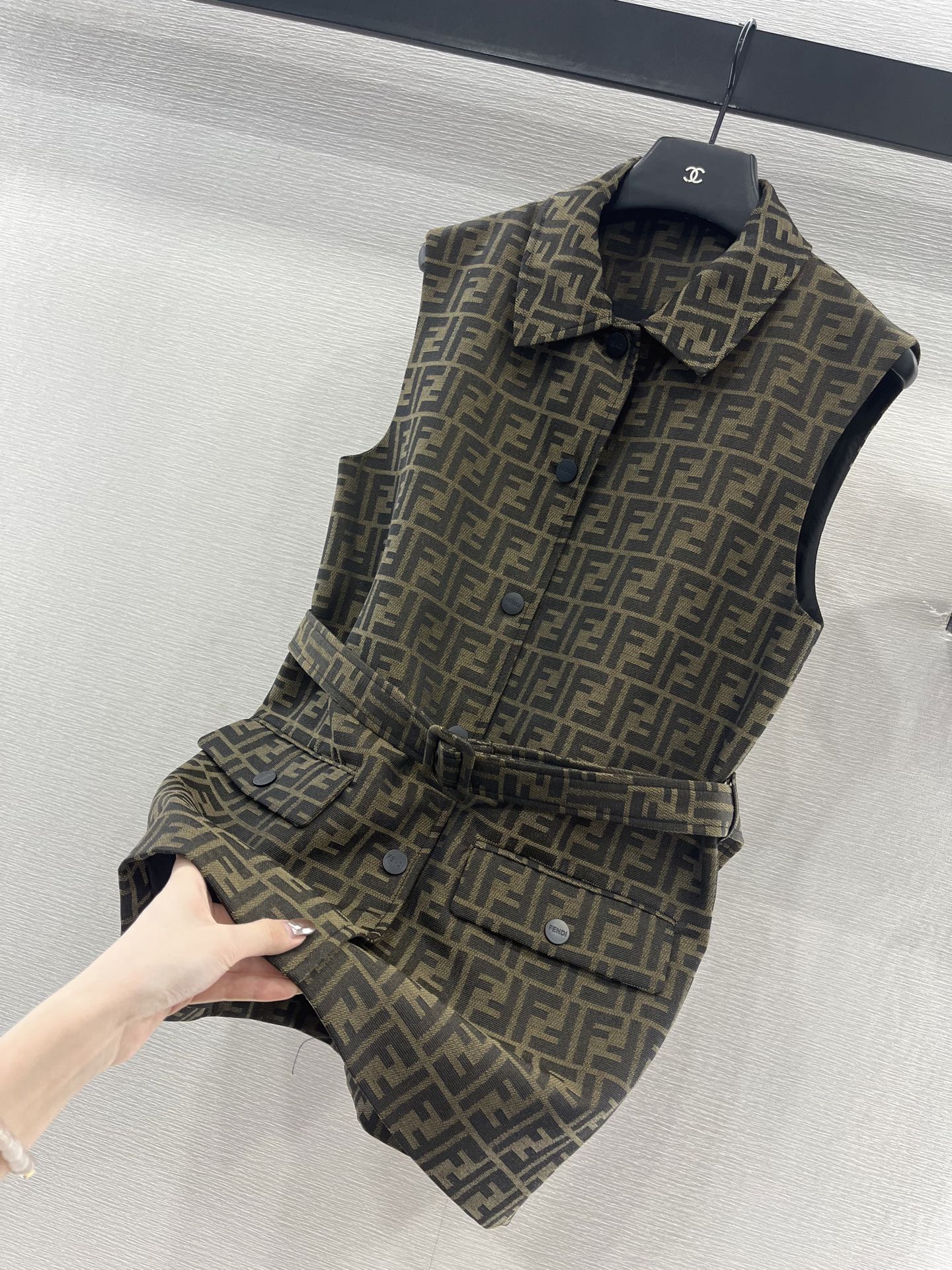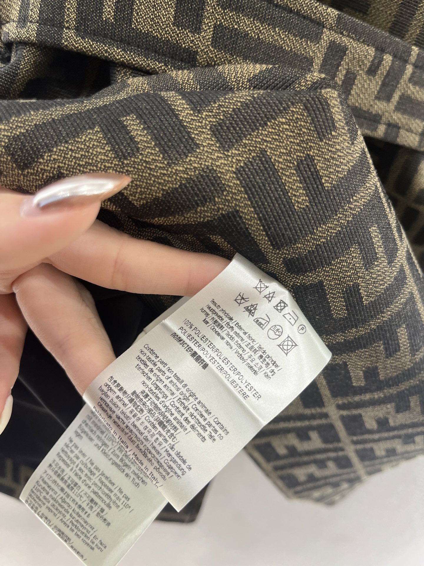 这款衣服是AAAAA 1:1 质量 (非常棒). 使用了和原版一模一样的材料. 商标部分也保持了和芬迪/Fendi一样. 图片拍摄是实物衣服拍摄, 您所收到的实物保证和我们图片一模一样.