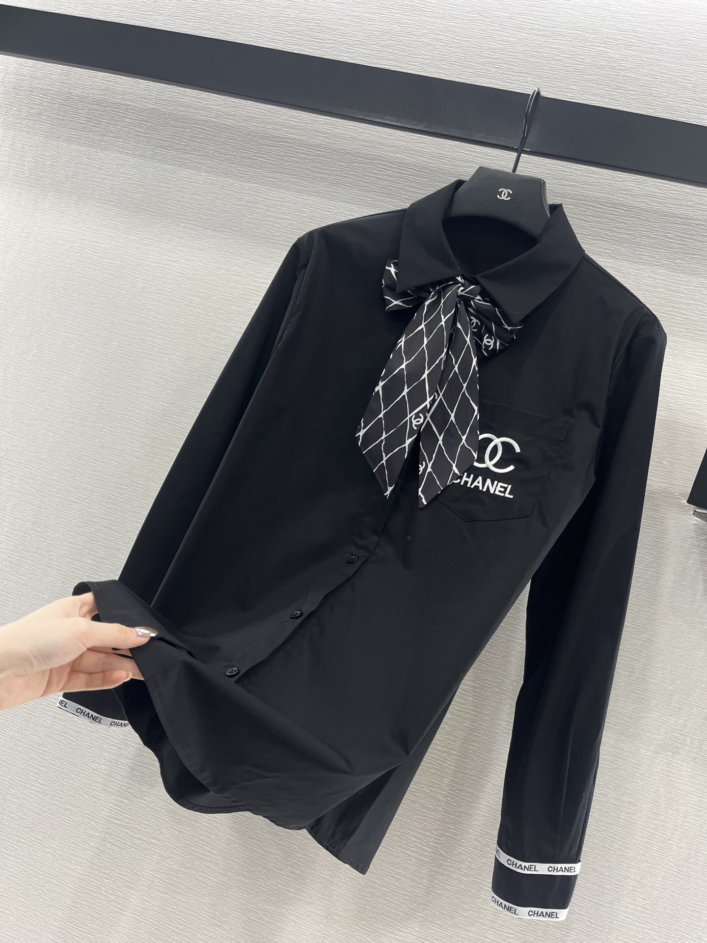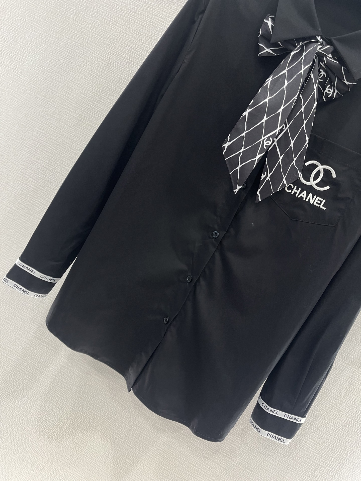 这款衣服是AAAAA 1:1 质量 (非常棒). 使用了和原版一模一样的材料. 商标部分也保持了和香奈儿/Chanel一样. 图片拍摄是实物衣服拍摄, 您所收到的实物保证和我们图片一模一样.