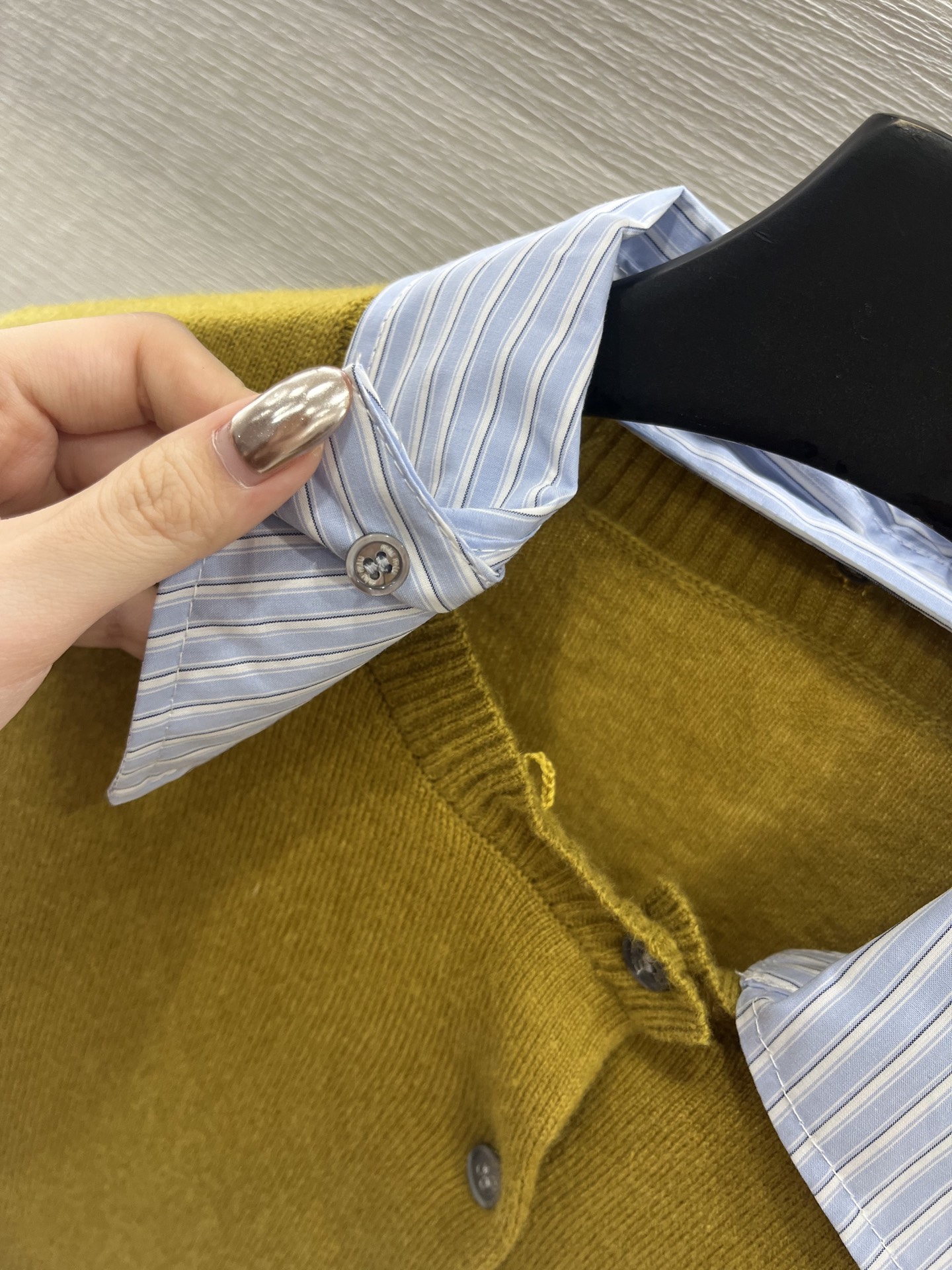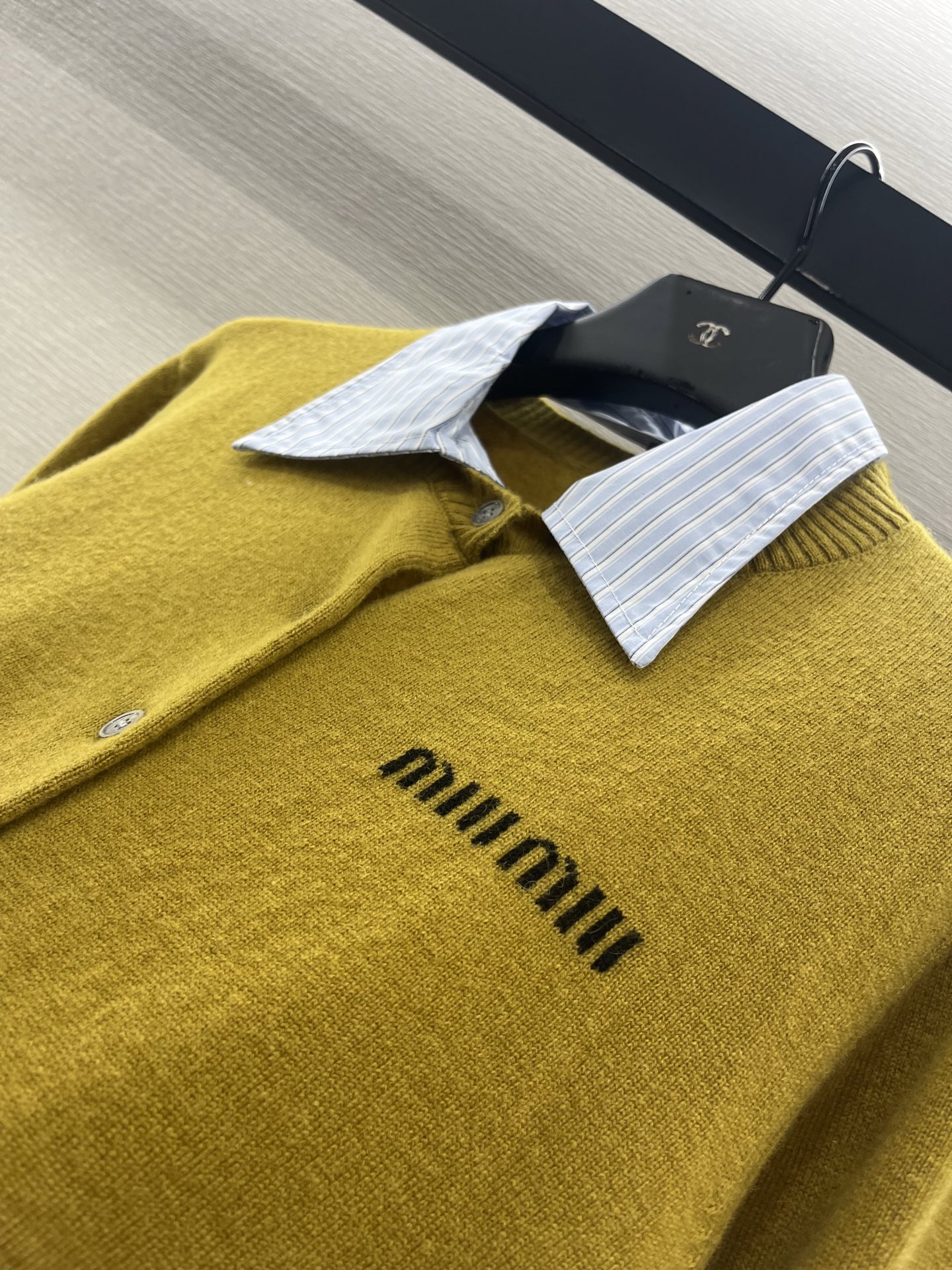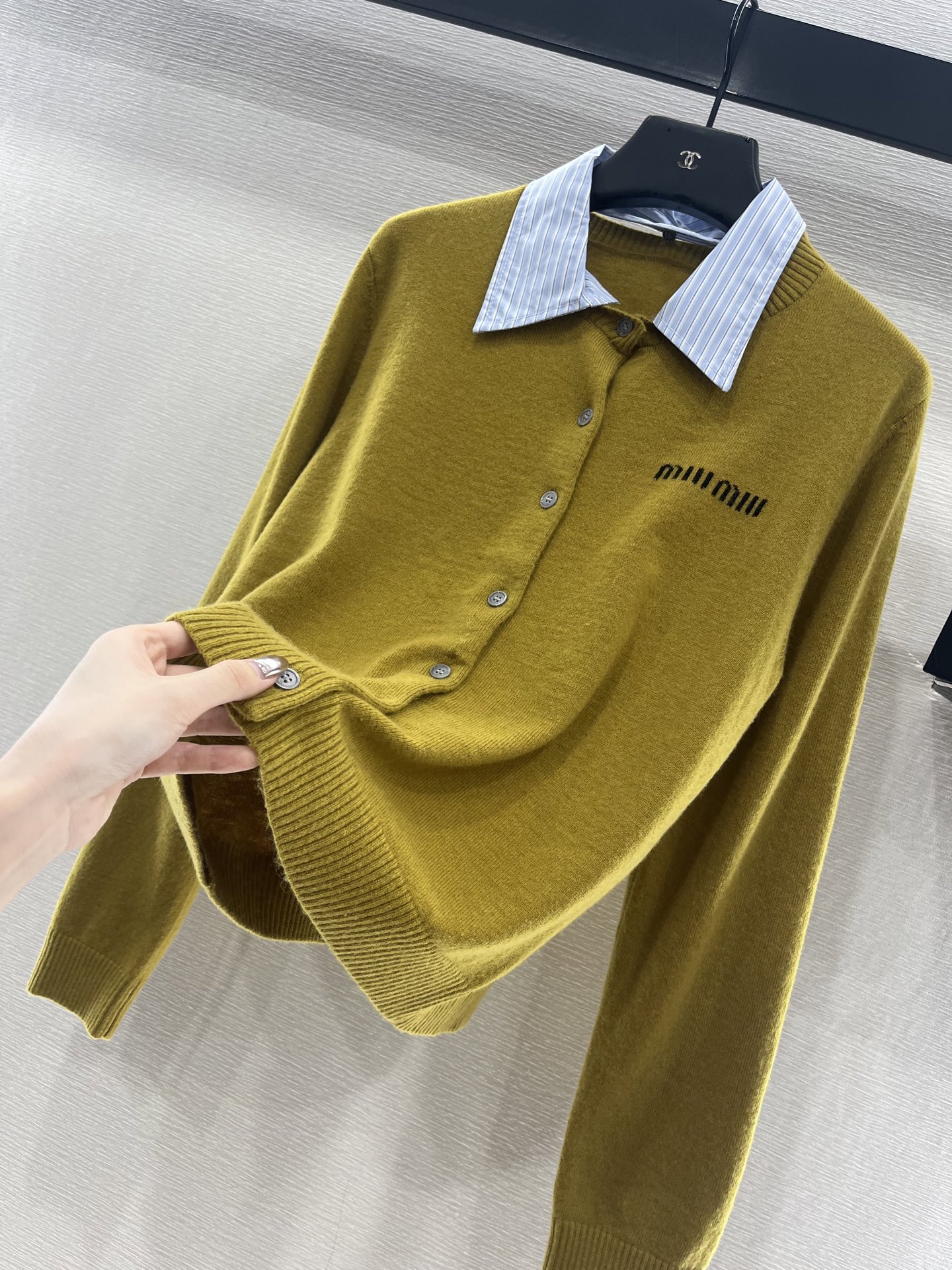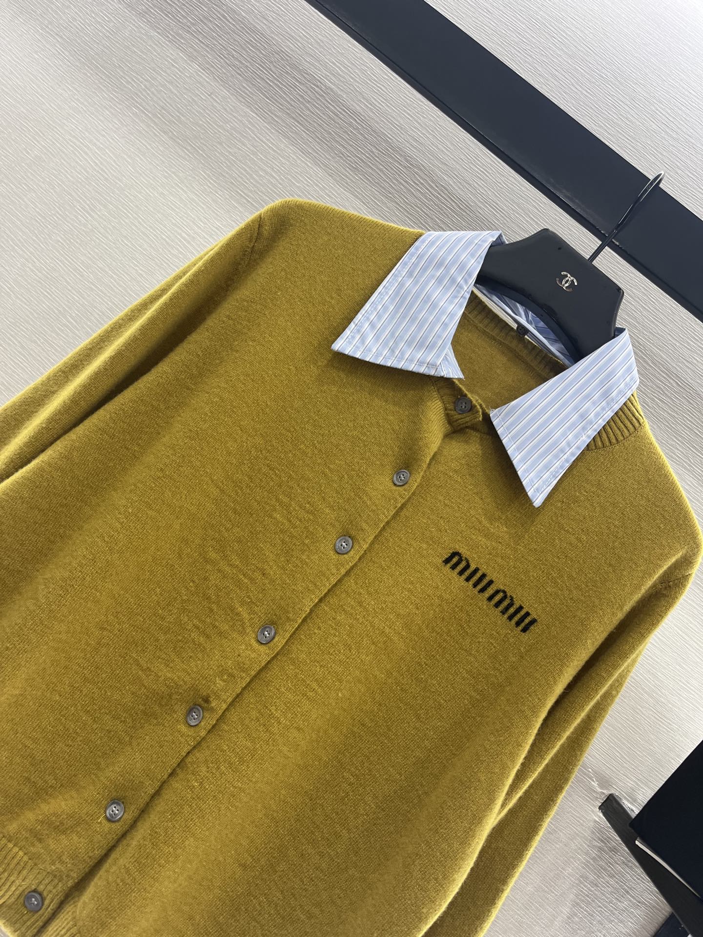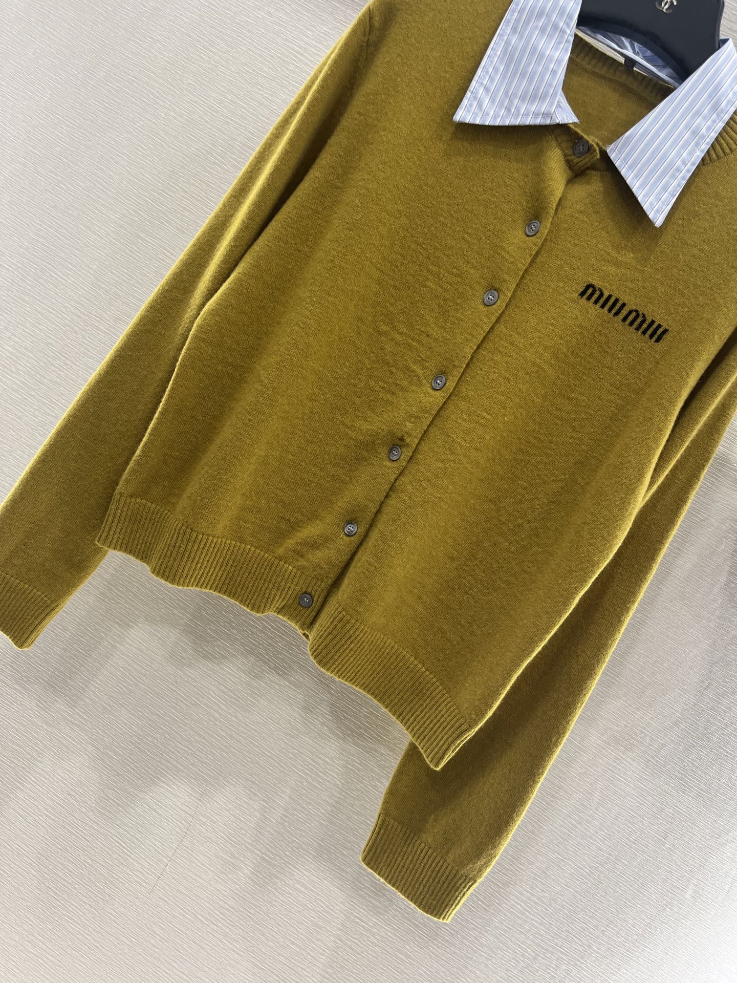 这款衣服是AAAAA 1:1 质量 (非常棒). 使用了和原版一模一样的材料. 商标部分也保持了和缪缪/Miu Miu一样. 图片拍摄是实物衣服拍摄, 您所收到的实物保证和我们图片一模一样.