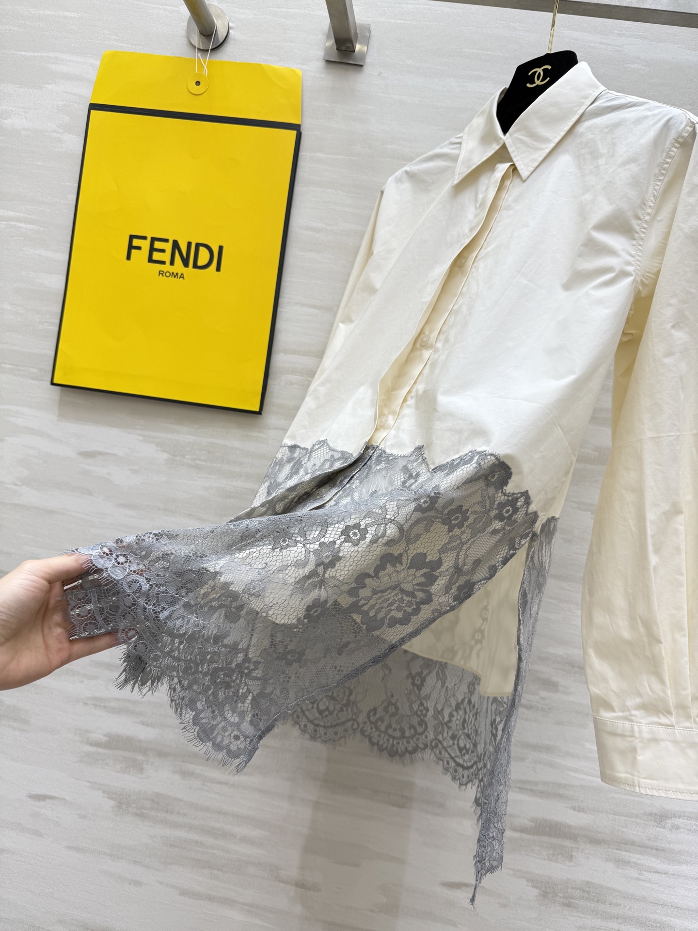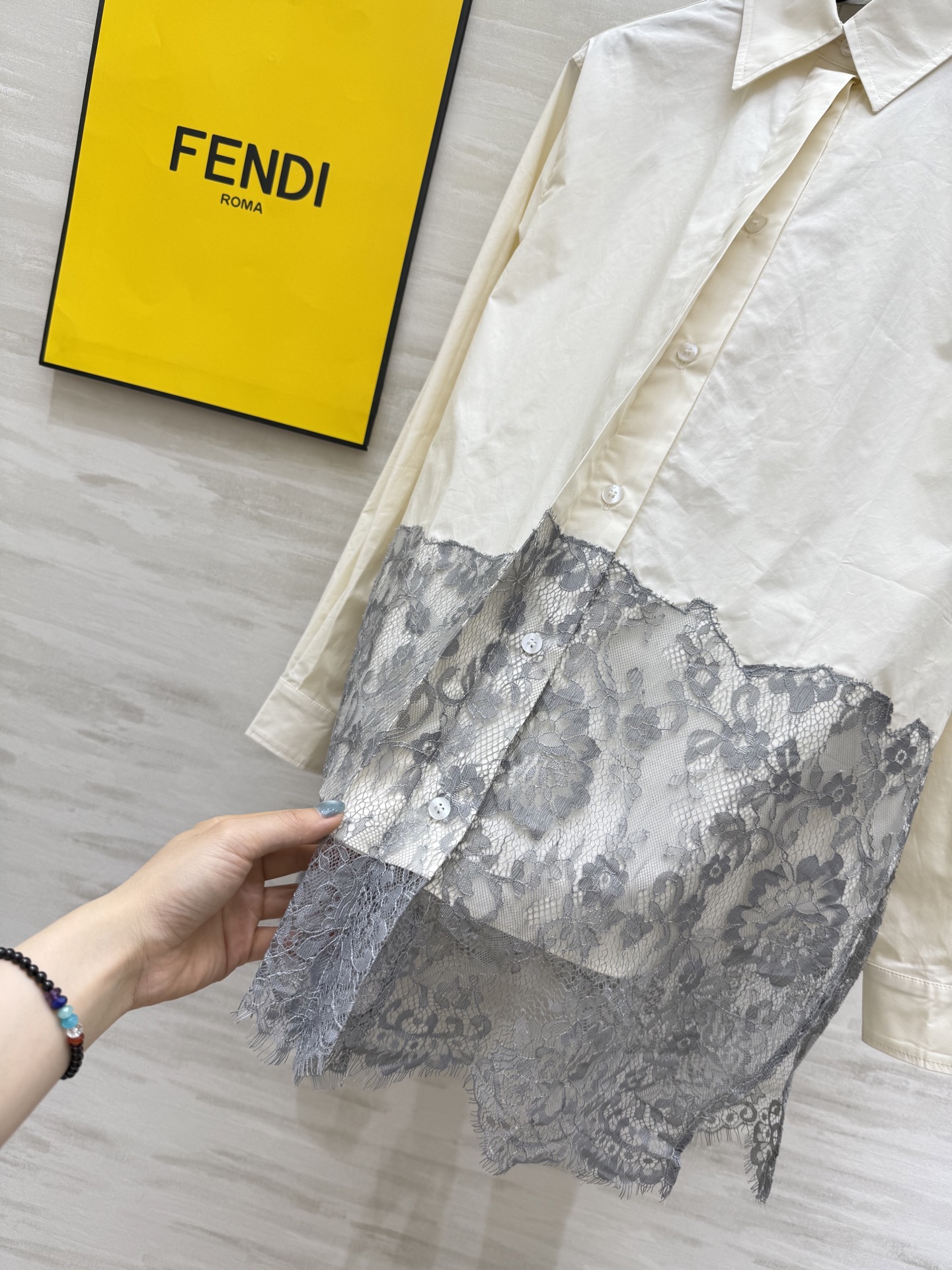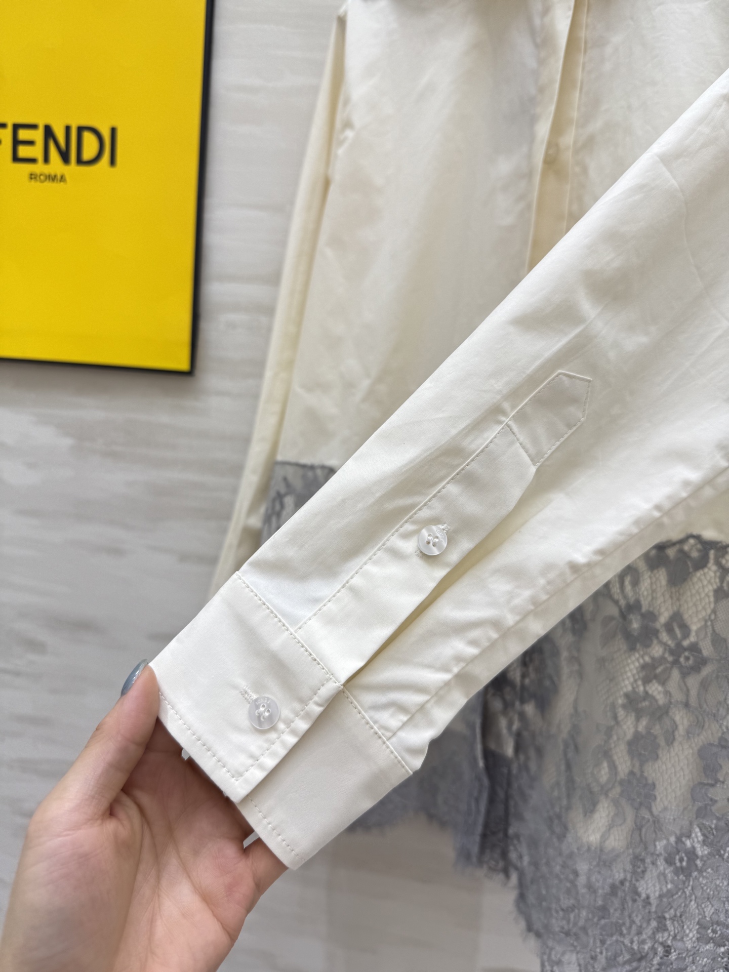 这款衣服是AAAAA 1:1 质量 (非常棒). 使用了和原版一模一样的材料. 商标部分也保持了和芬迪/Fendi一样. 图片拍摄是实物衣服拍摄, 您所收到的实物保证和我们图片一模一样.