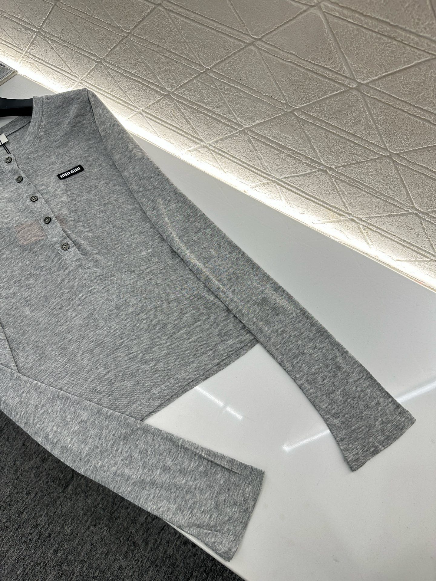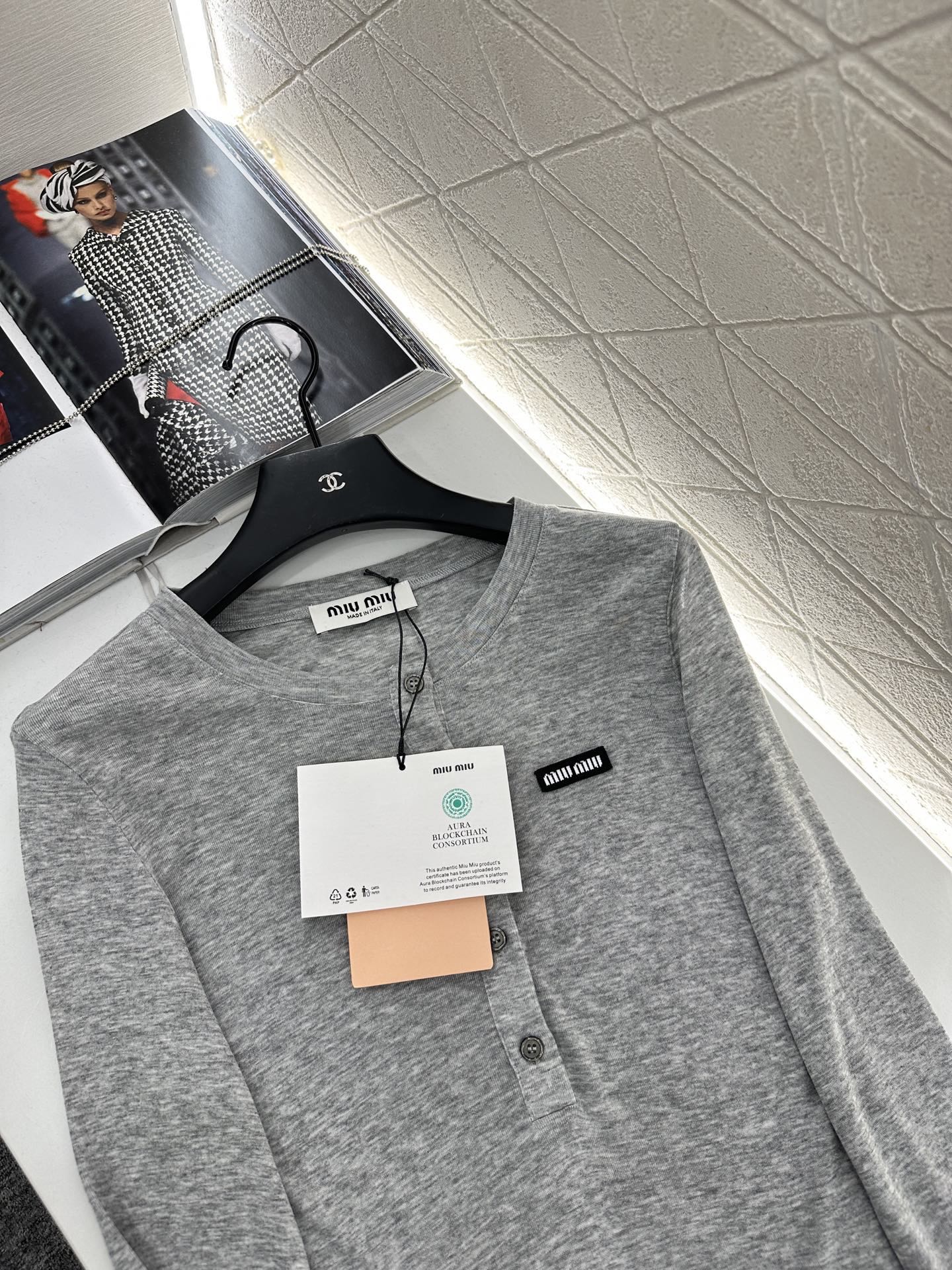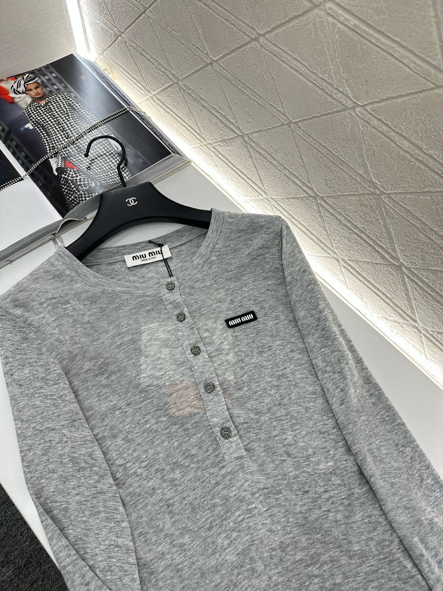 这款衣服是AAAAA 1:1 质量 (非常棒). 使用了和原版一模一样的材料. 商标部分也保持了和缪缪/Miu Miu一样. 图片拍摄是实物衣服拍摄, 您所收到的实物保证和我们图片一模一样.
