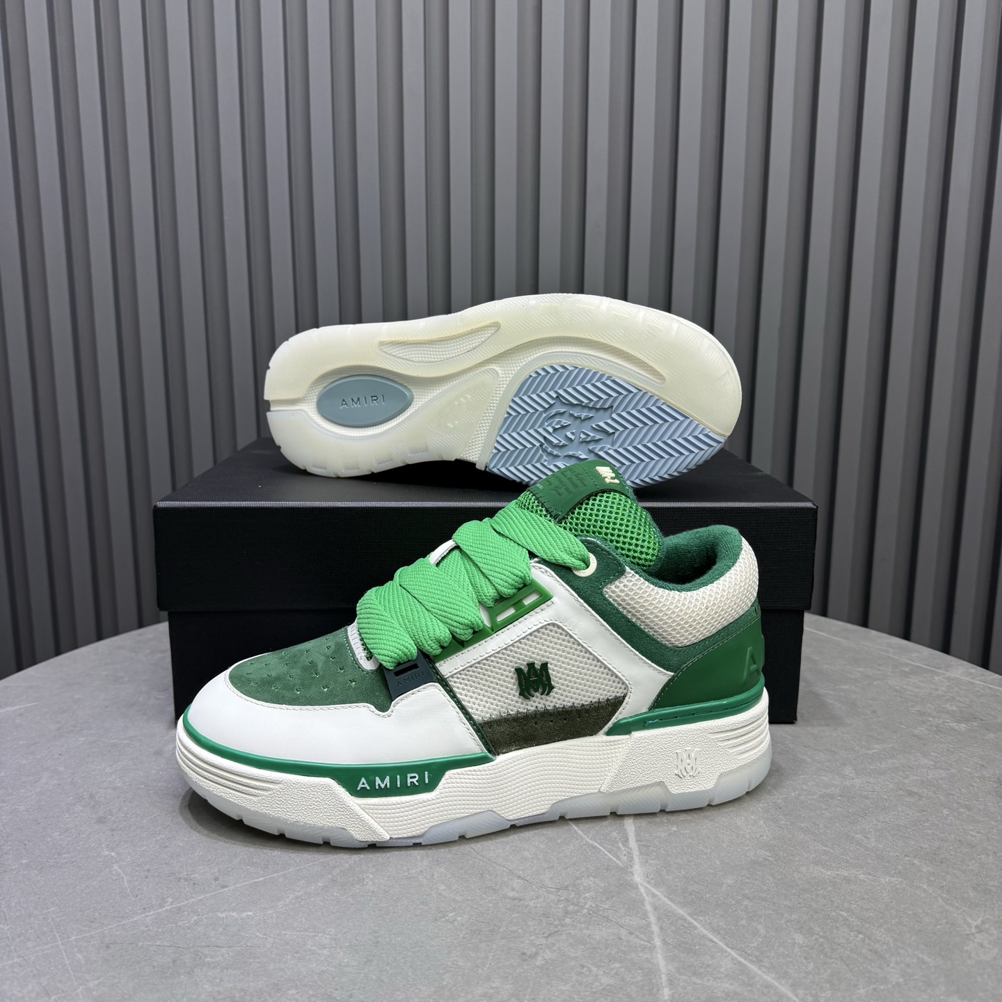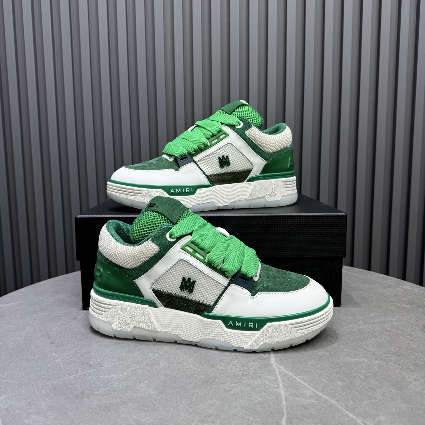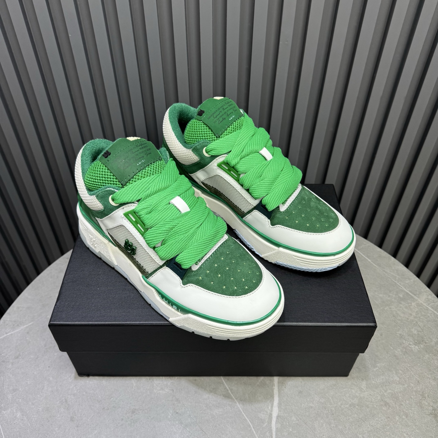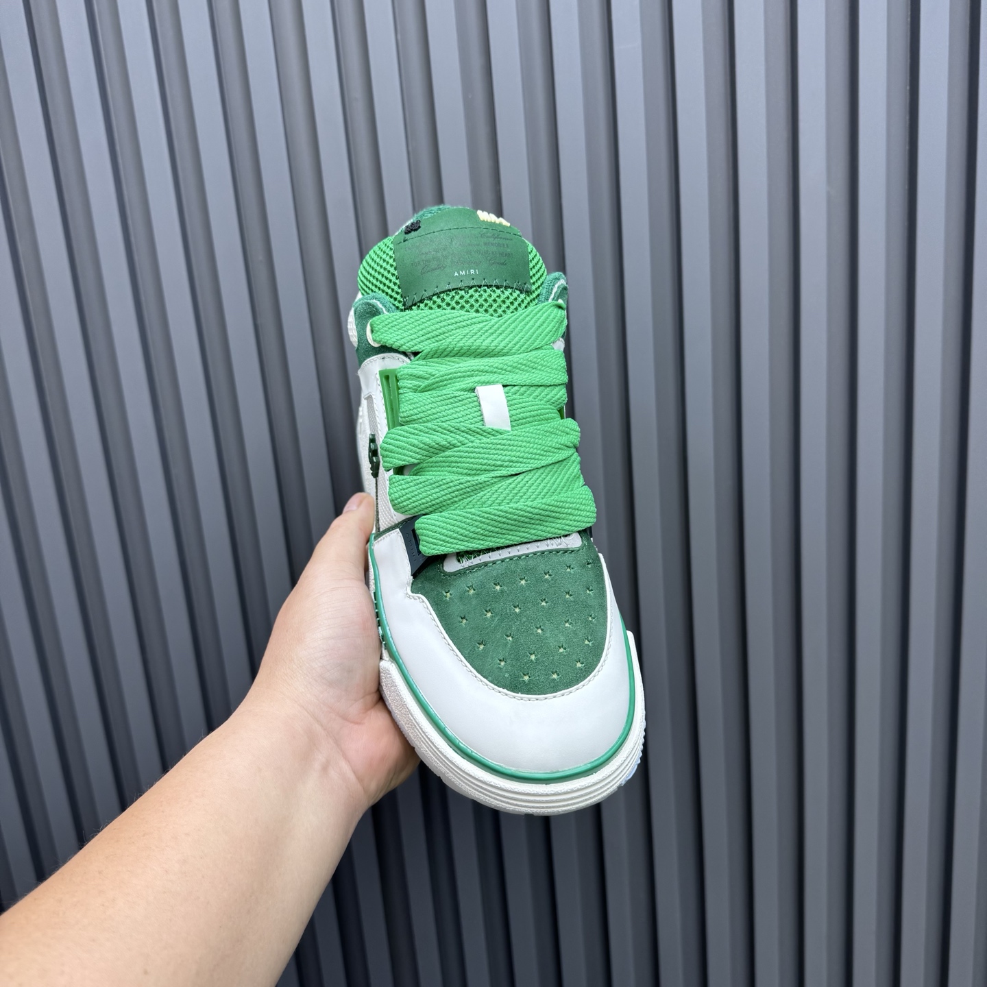 这款鞋子是AAAAA 1:1 质量 (非常棒). 使用了和原版一模一样的材料. 商标部分也保持了和AMIRI一样. 图片拍摄是实物鞋子拍摄, 您所收到的实物保证和我们图片一模一样.