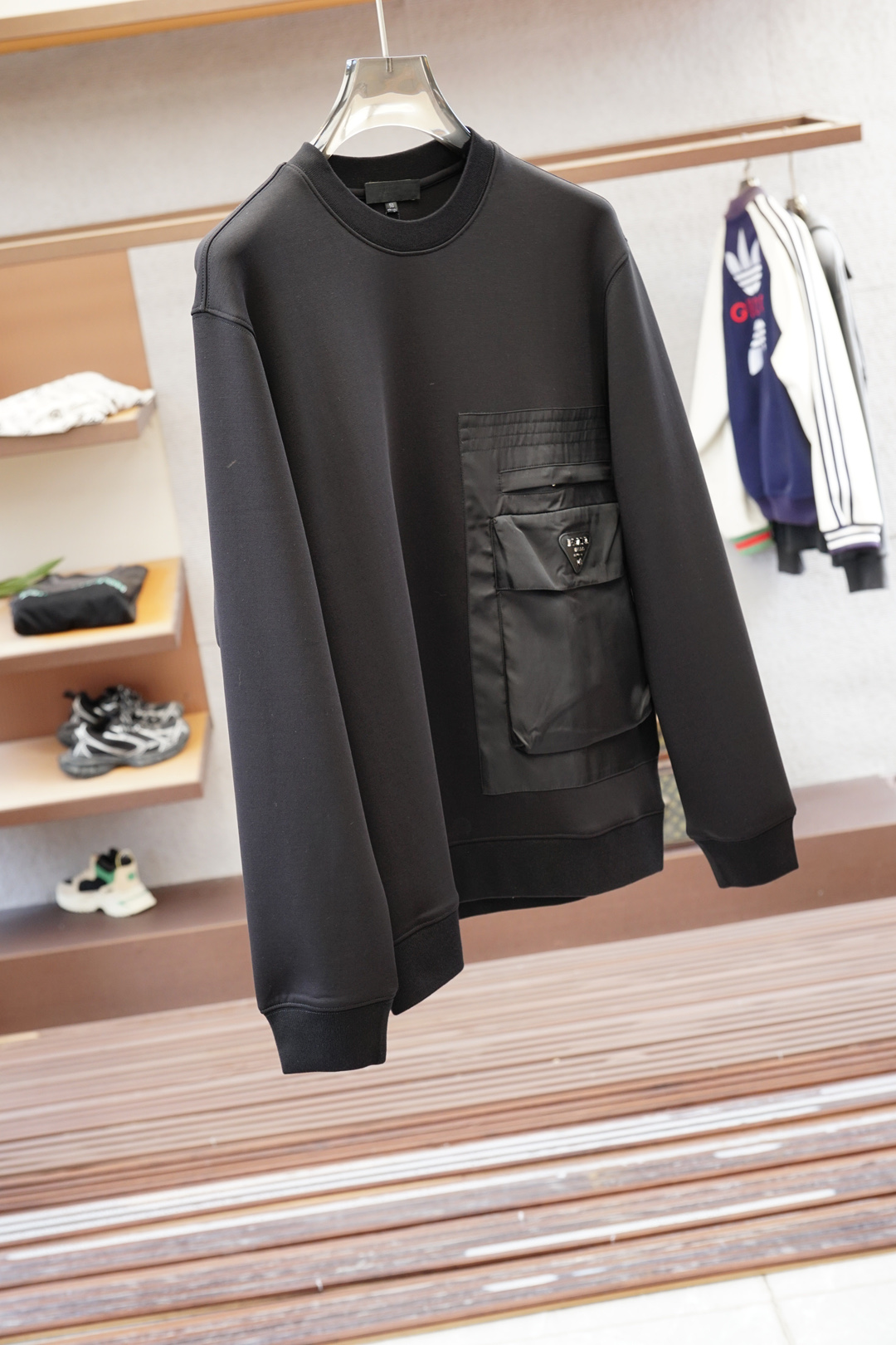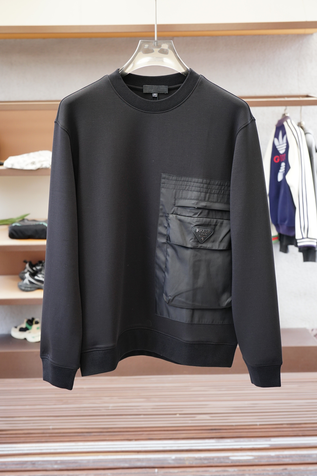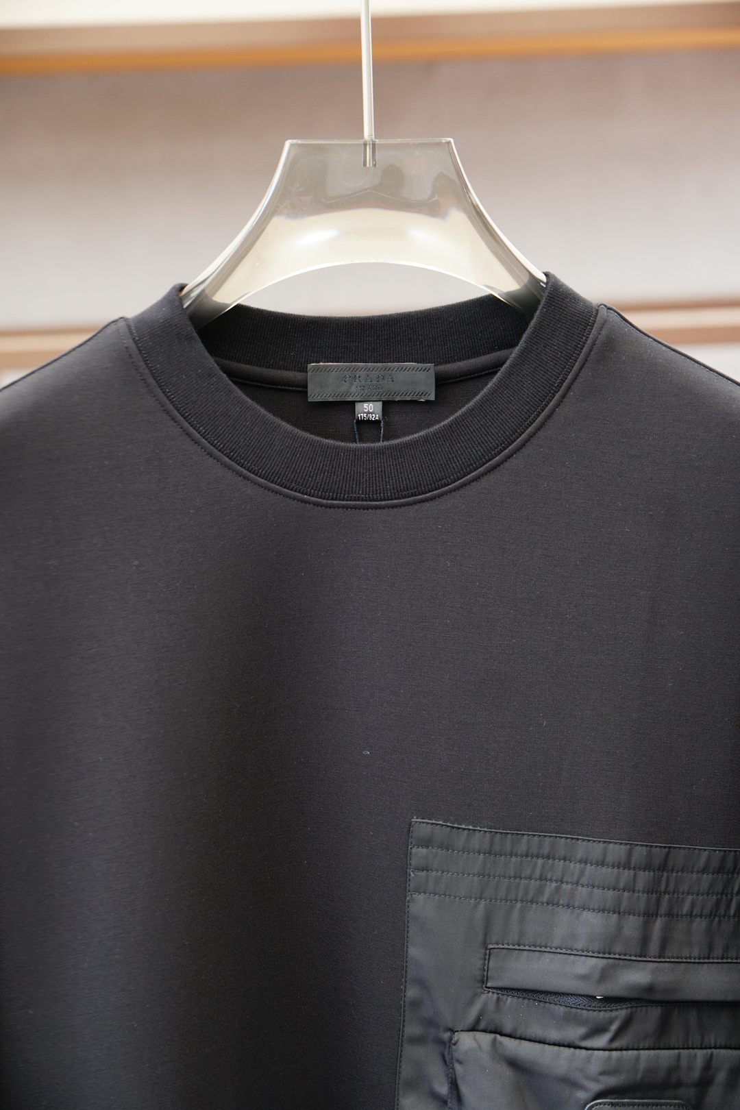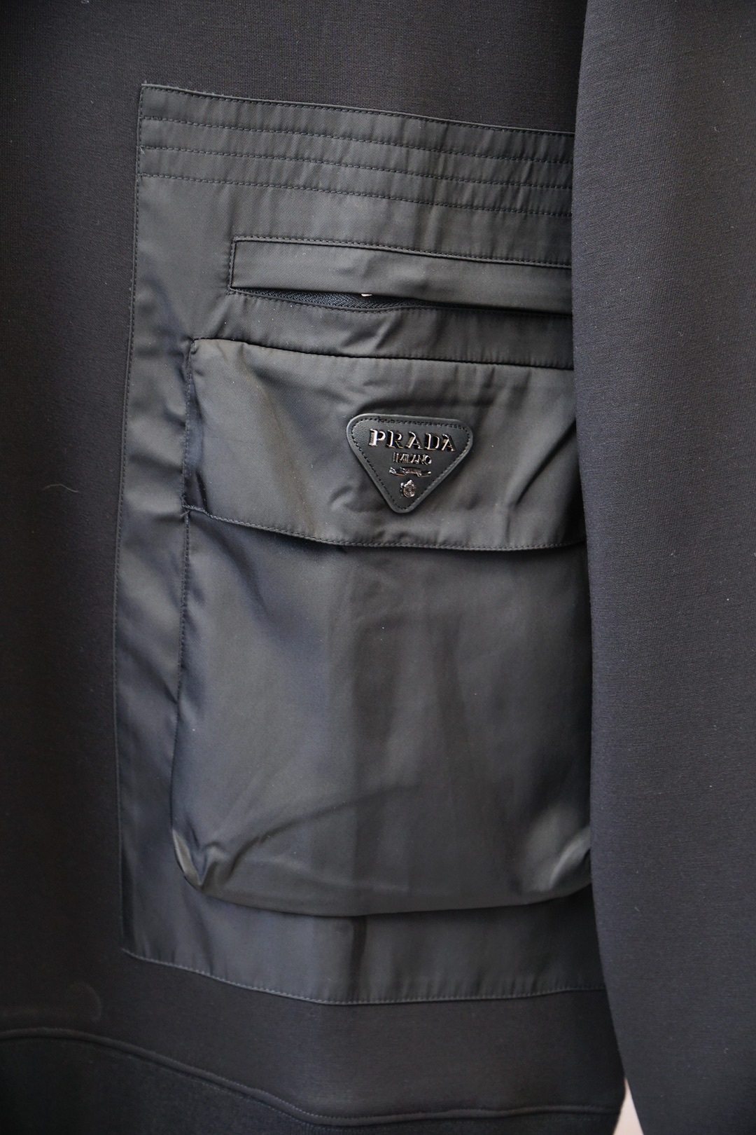这款衣服是AAAAA 1:1 质量 (非常棒). 使用了和原版一模一样的材料. 商标部分也保持了和普拉达/Prada一样. 图片拍摄是实物衣服拍摄, 您所收到的实物保证和我们图片一模一样.