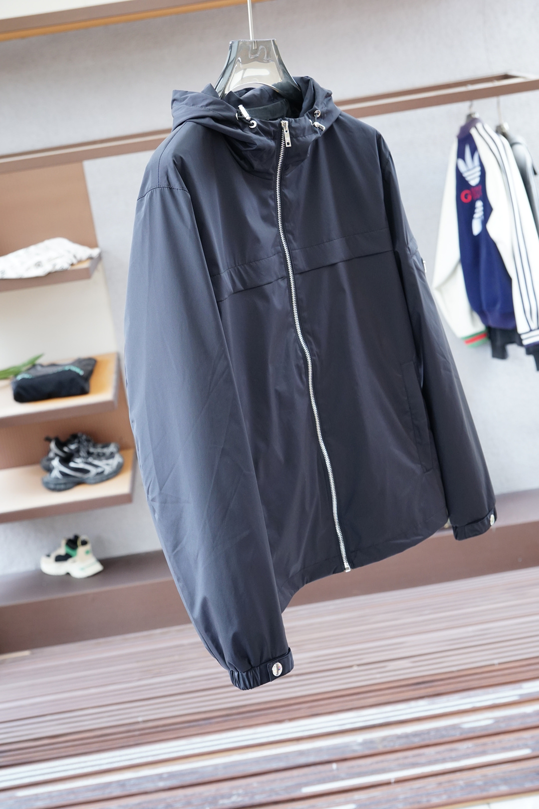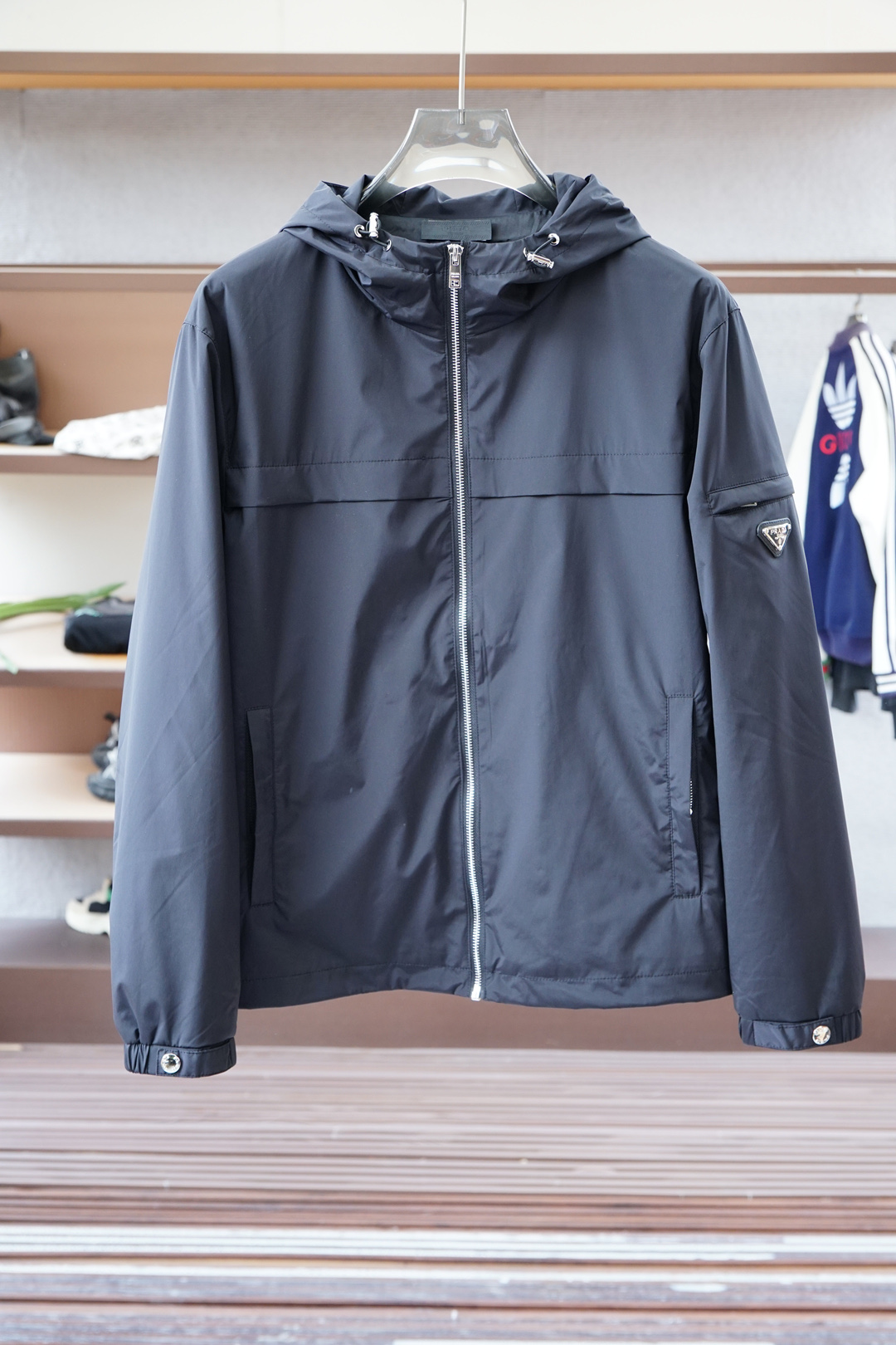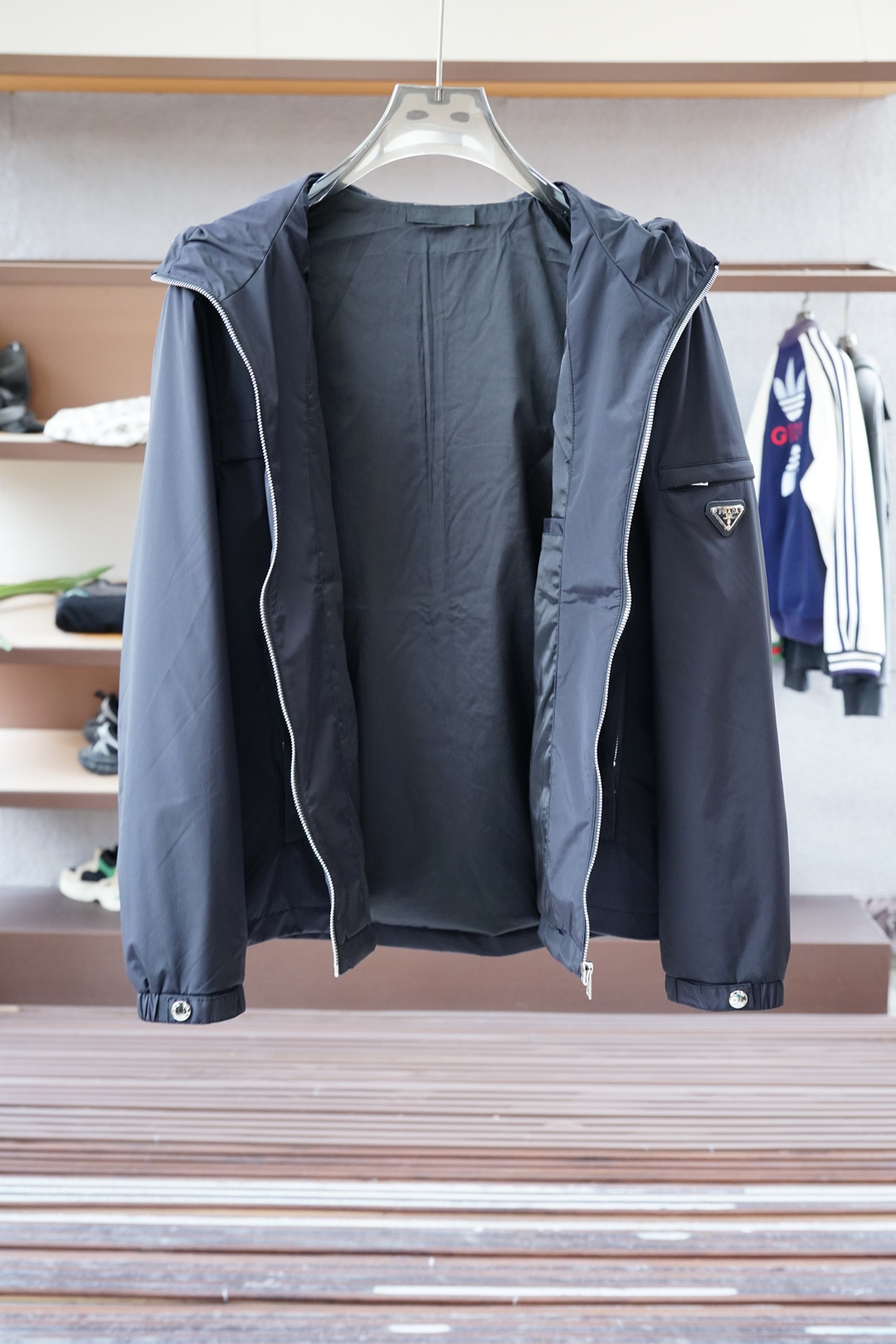 这款衣服是AAAAA 1:1 质量 (非常棒). 使用了和原版一模一样的材料. 商标部分也保持了和普拉达/Prada一样. 图片拍摄是实物衣服拍摄, 您所收到的实物保证和我们图片一模一样.
