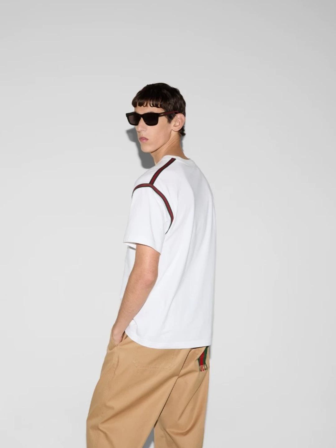 这款衣服是AAAAA 1:1 质量 (非常棒). 使用了和原版一模一样的材料. 商标部分也保持了和古奇/Gucci一样. 图片拍摄是实物衣服拍摄, 您所收到的实物保证和我们图片一模一样.