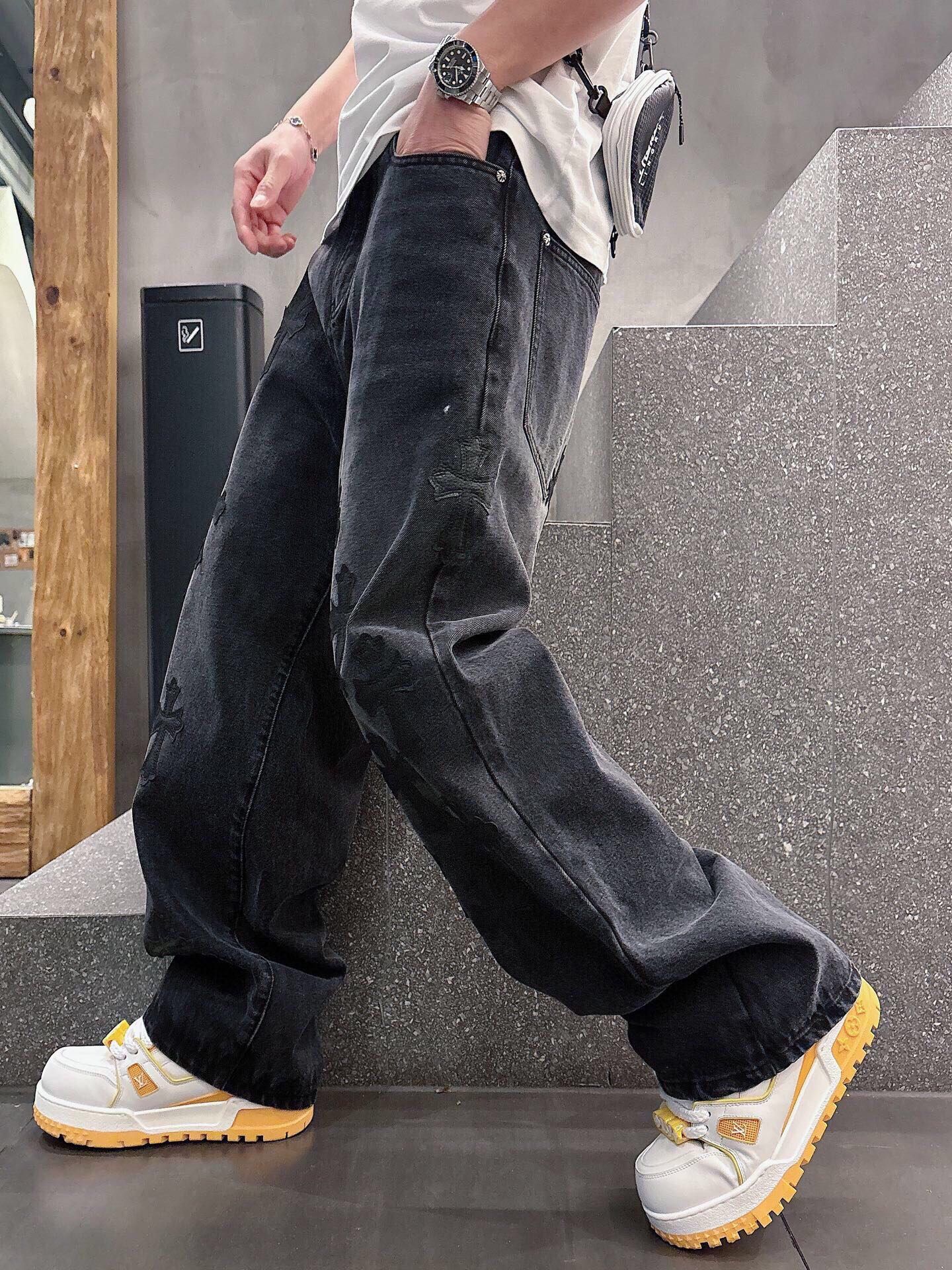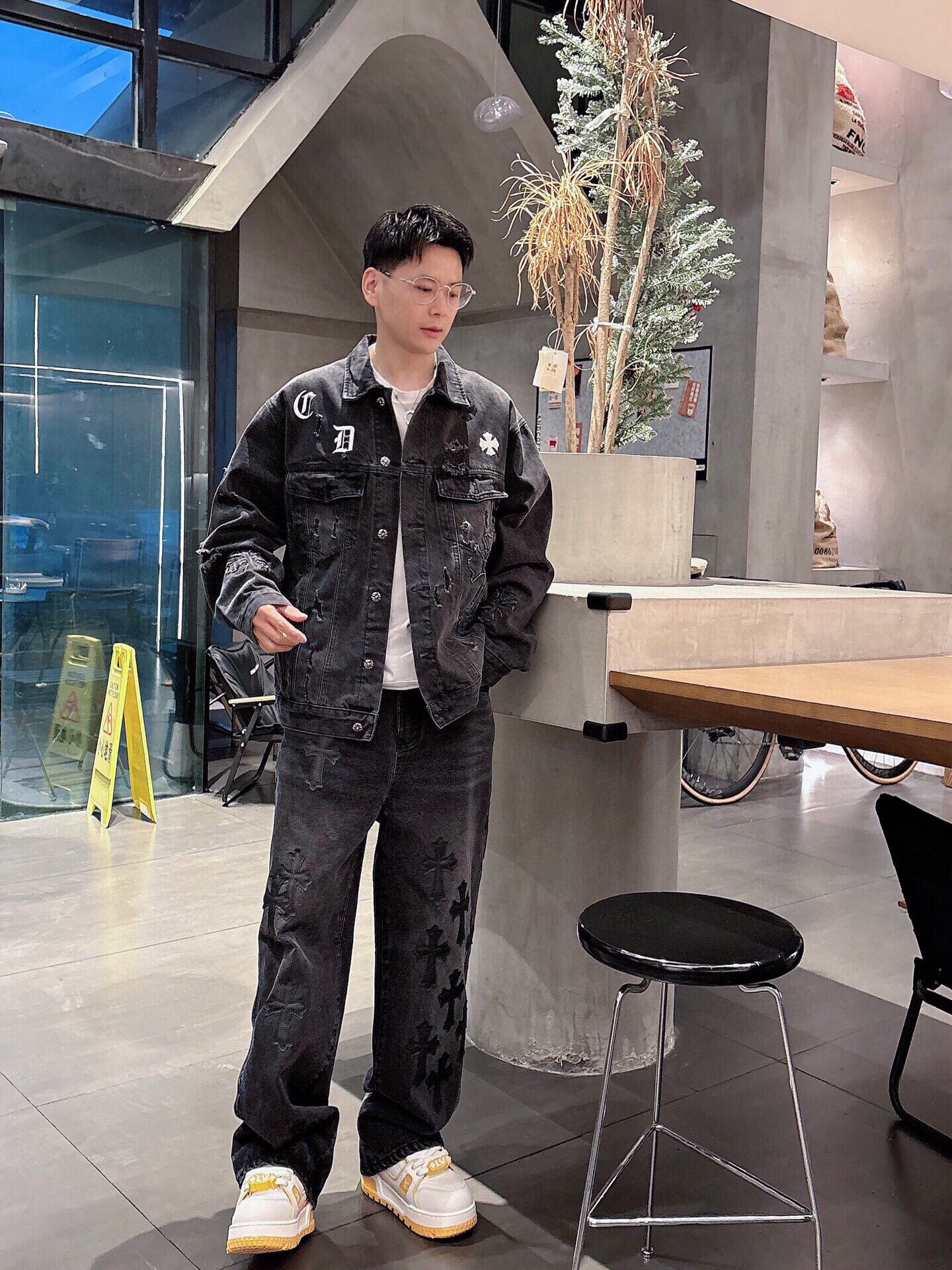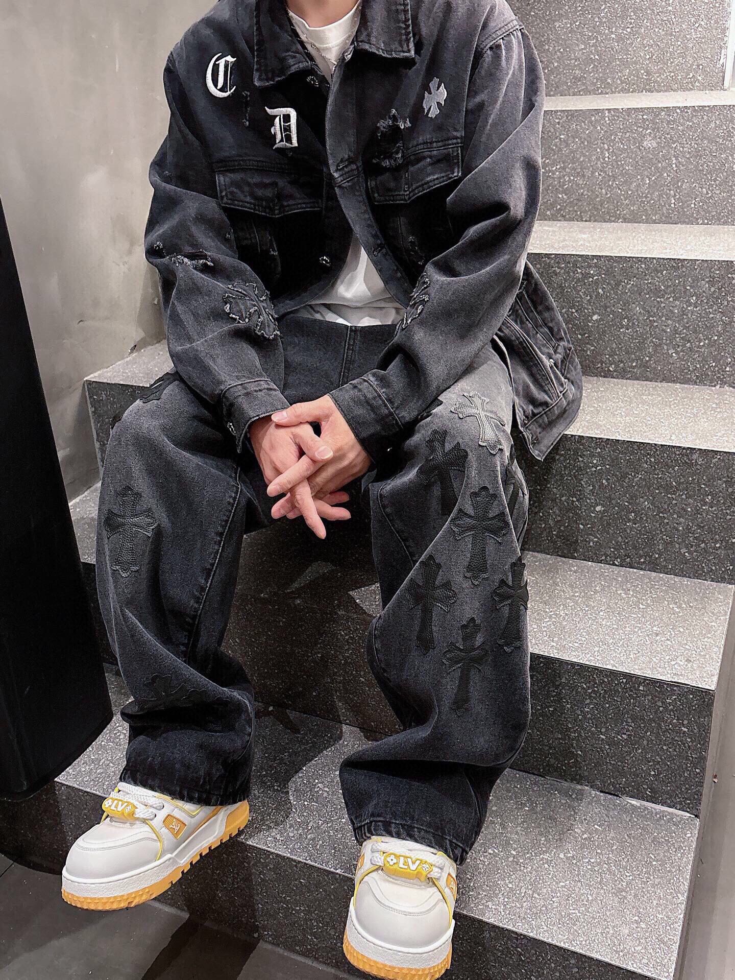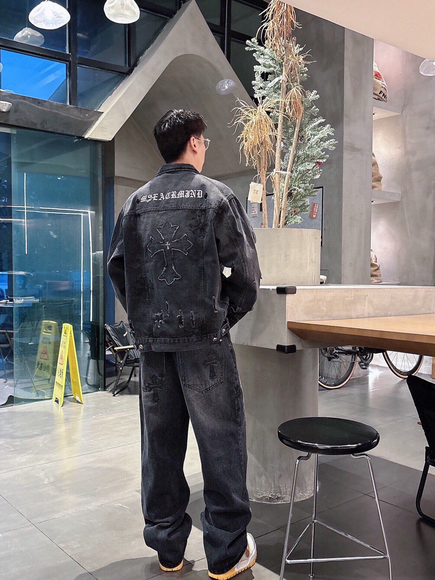 这款衣服是AAAAA 1:1 质量 (非常棒). 使用了和原版一模一样的材料. 商标部分也保持了和克罗心/Chrome Hearts一样. 图片拍摄是实物衣服拍摄, 您所收到的实物保证和我们图片一模一样.