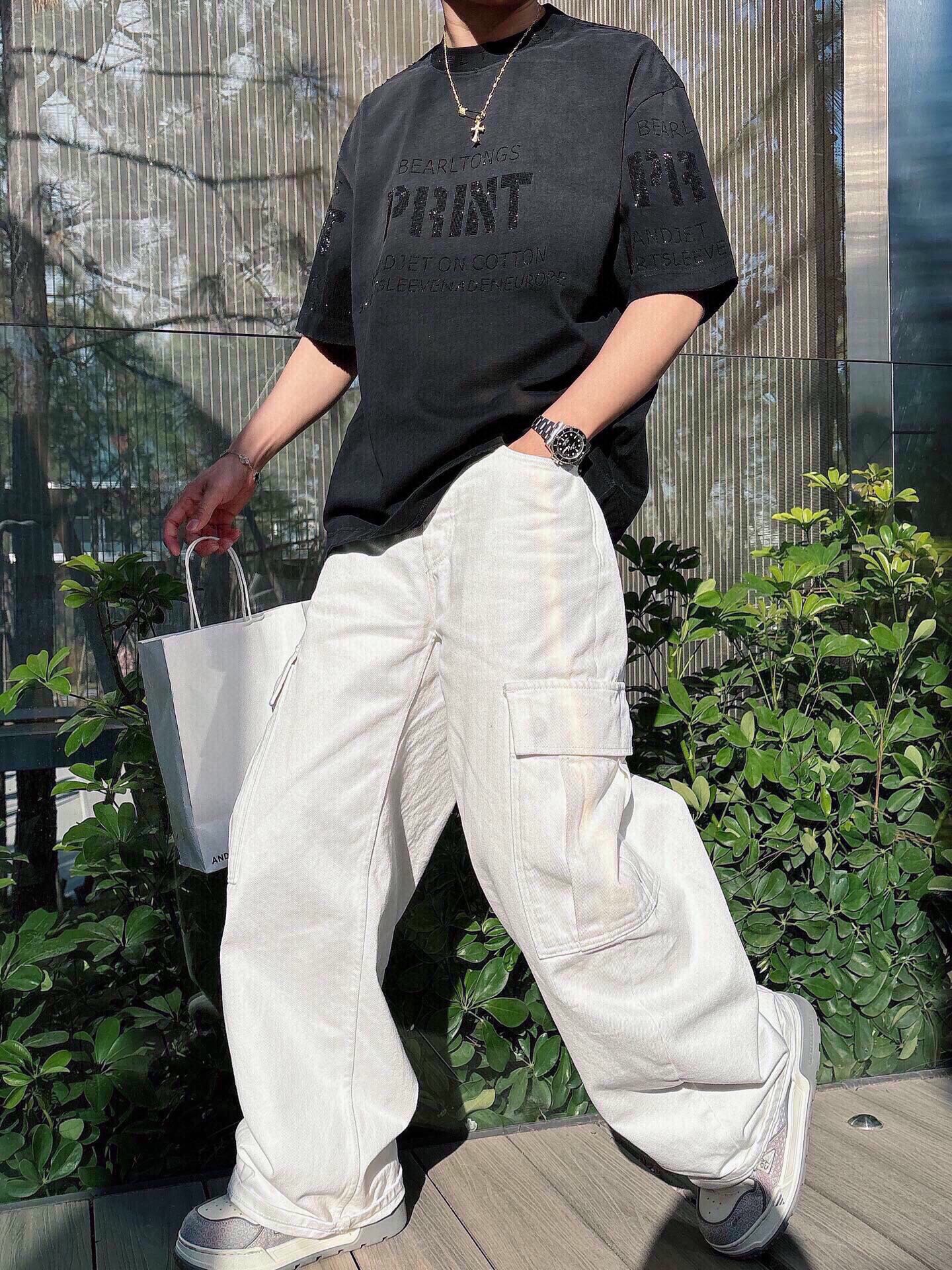 这款衣服是AAAAA 1:1 质量 (非常棒). 使用了和原版一模一样的材料. 商标部分也保持了和巴黎世家/Balenciaga一样. 图片拍摄是实物衣服拍摄, 您所收到的实物保证和我们图片一模一样.