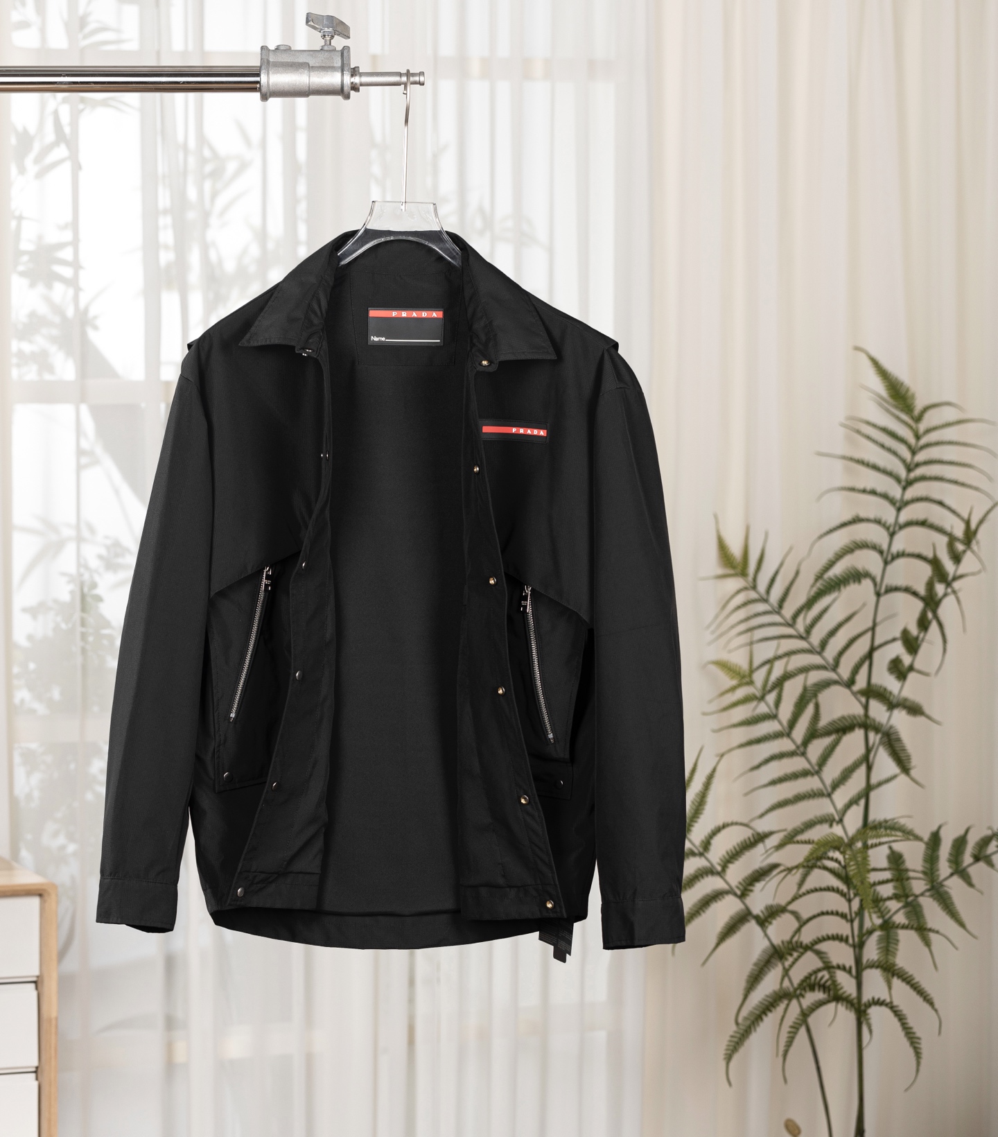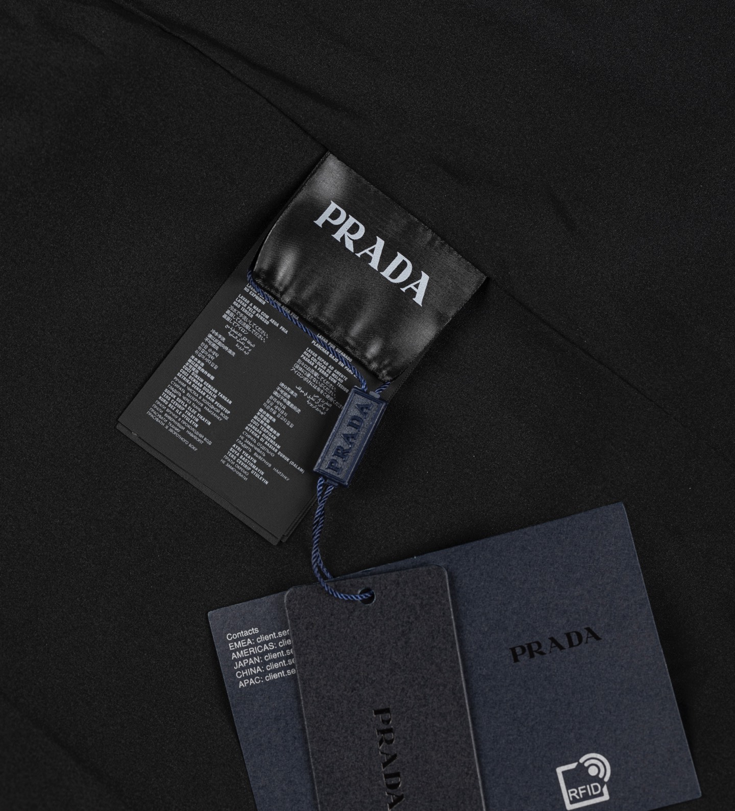 这款衣服是AAAAA 1:1 质量 (非常棒). 使用了和原版一模一样的材料. 商标部分也保持了和普拉达/Prada一样. 图片拍摄是实物衣服拍摄, 您所收到的实物保证和我们图片一模一样.